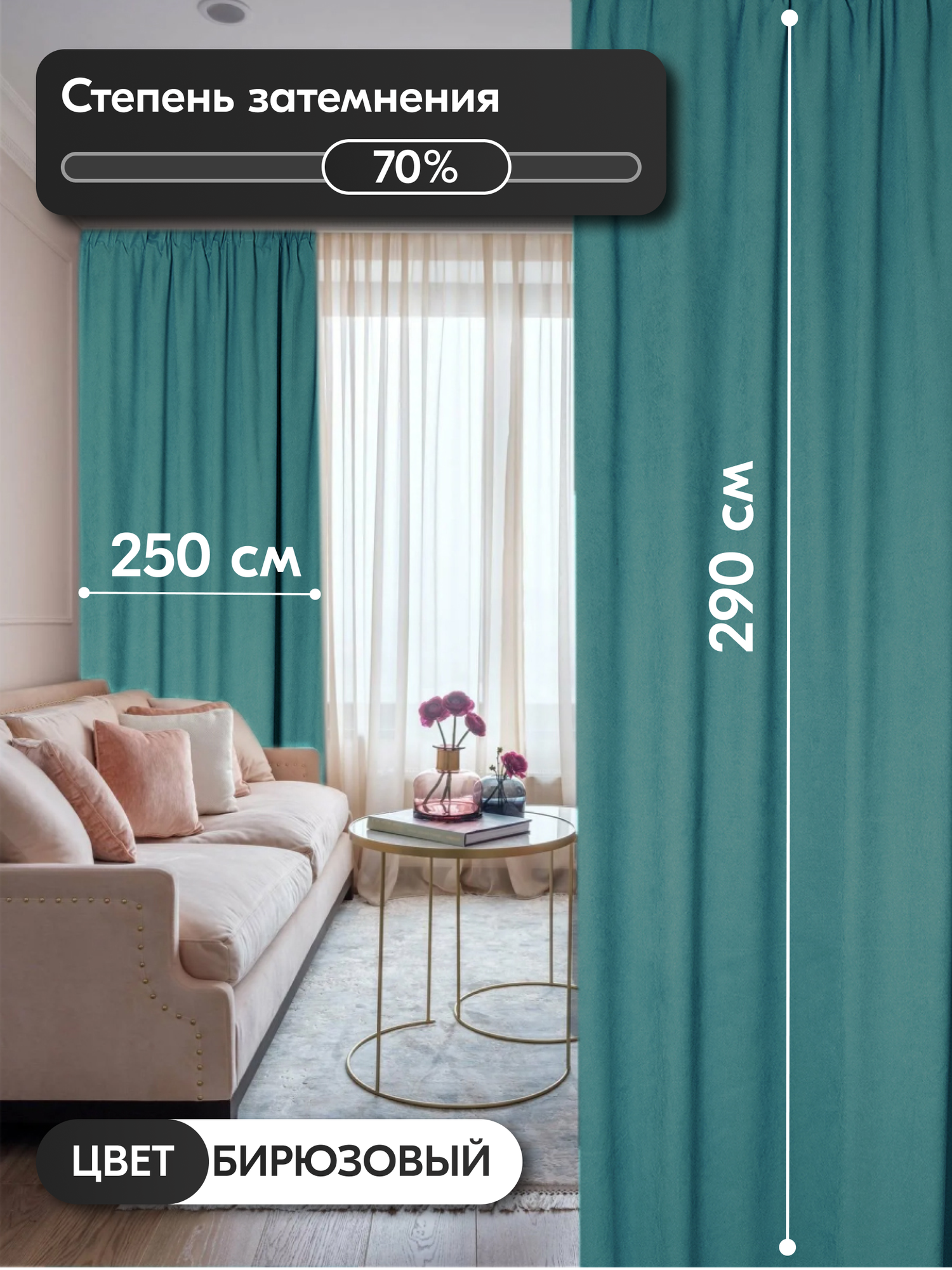 СохранитьКомплект матовых портьерных штор 500x290 см, 2 штуки, канвас, цвет: бирюзовый интересное: