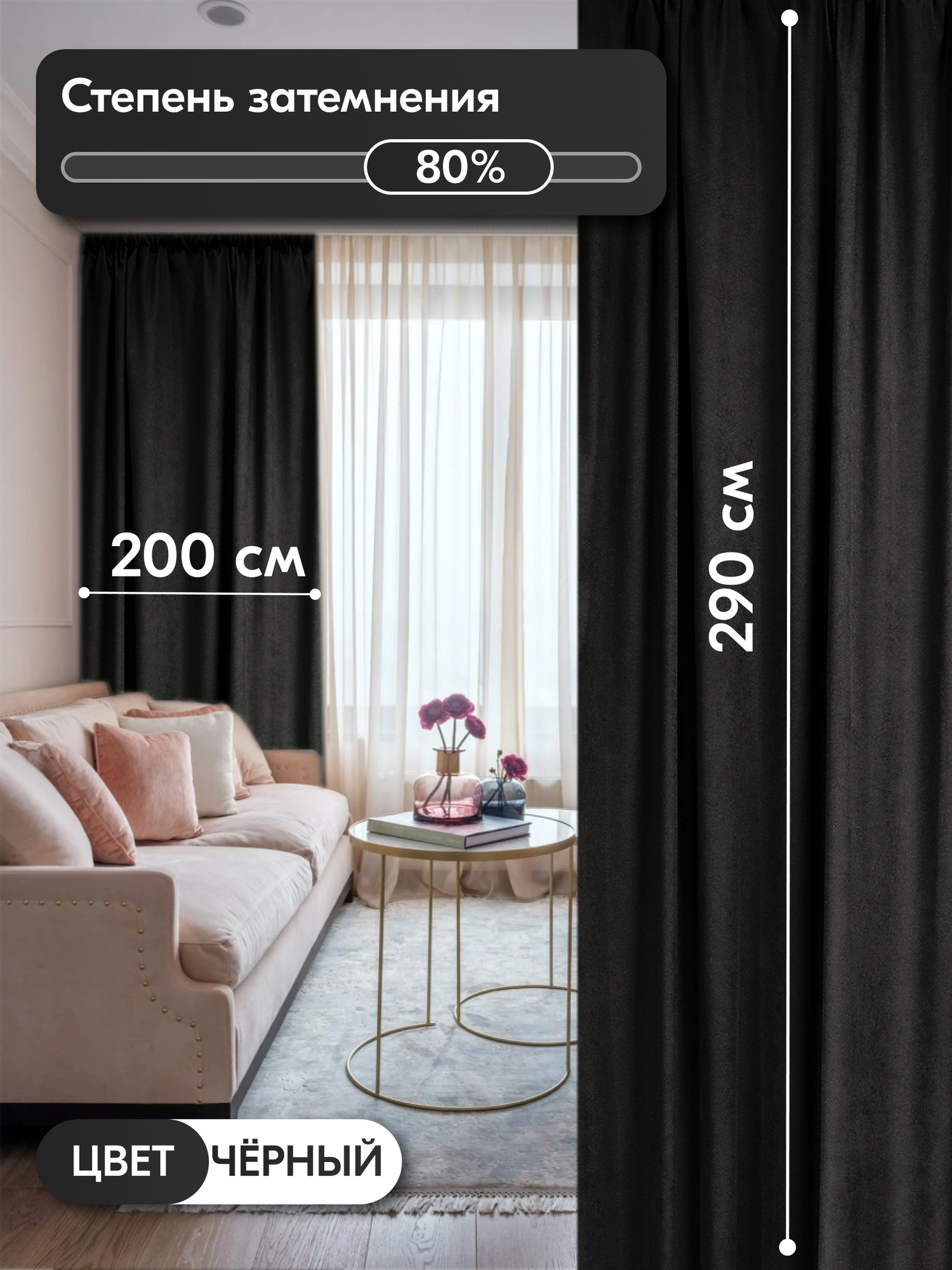 СохранитьКомплект матовых портьерных штор 400x290 см, 2 штуки, канвас, цвет: черный интересное: