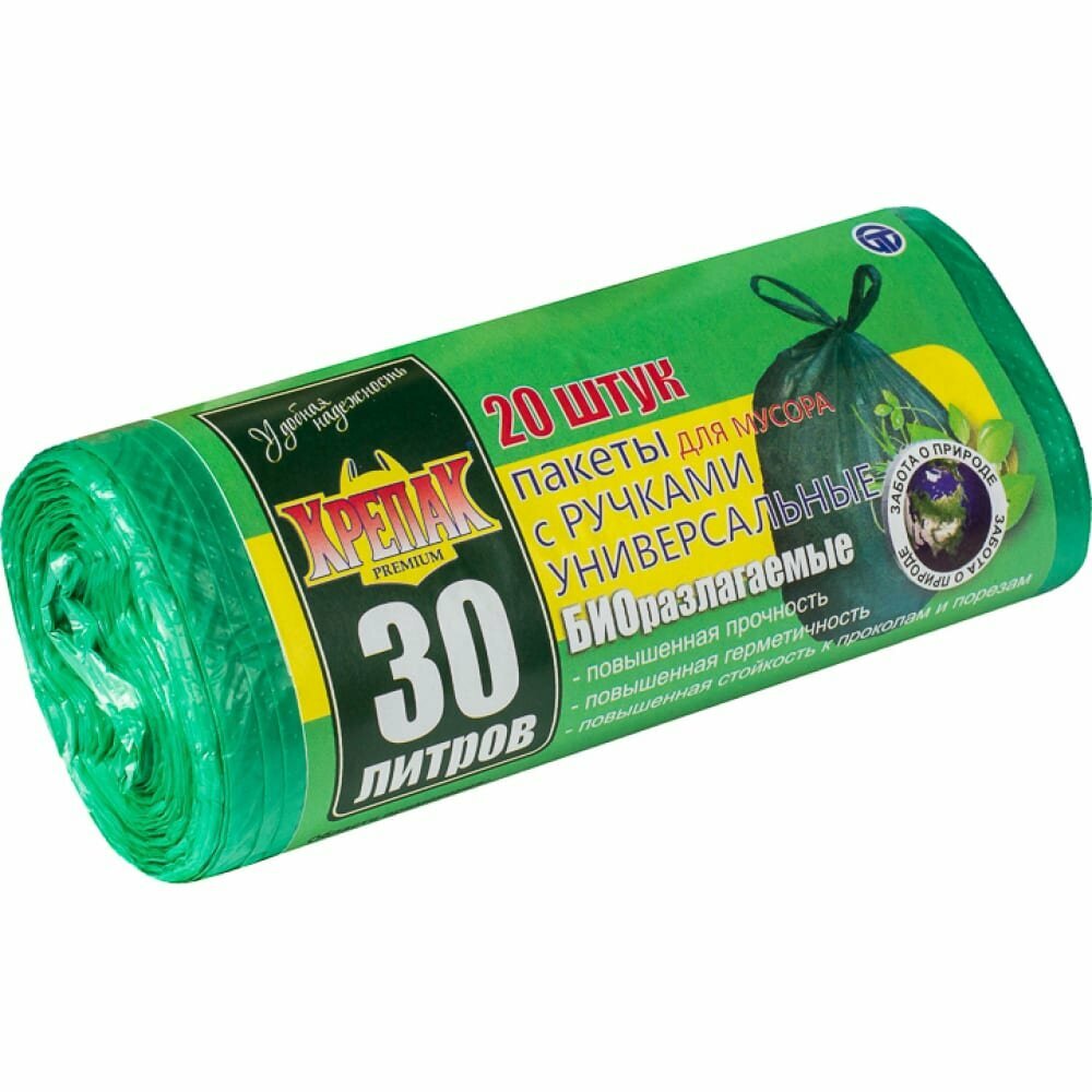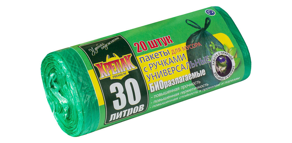 Мешки для мусора с ручками в рулоне Крепак биоразлагаемые 30 л, 20 шт интересное: