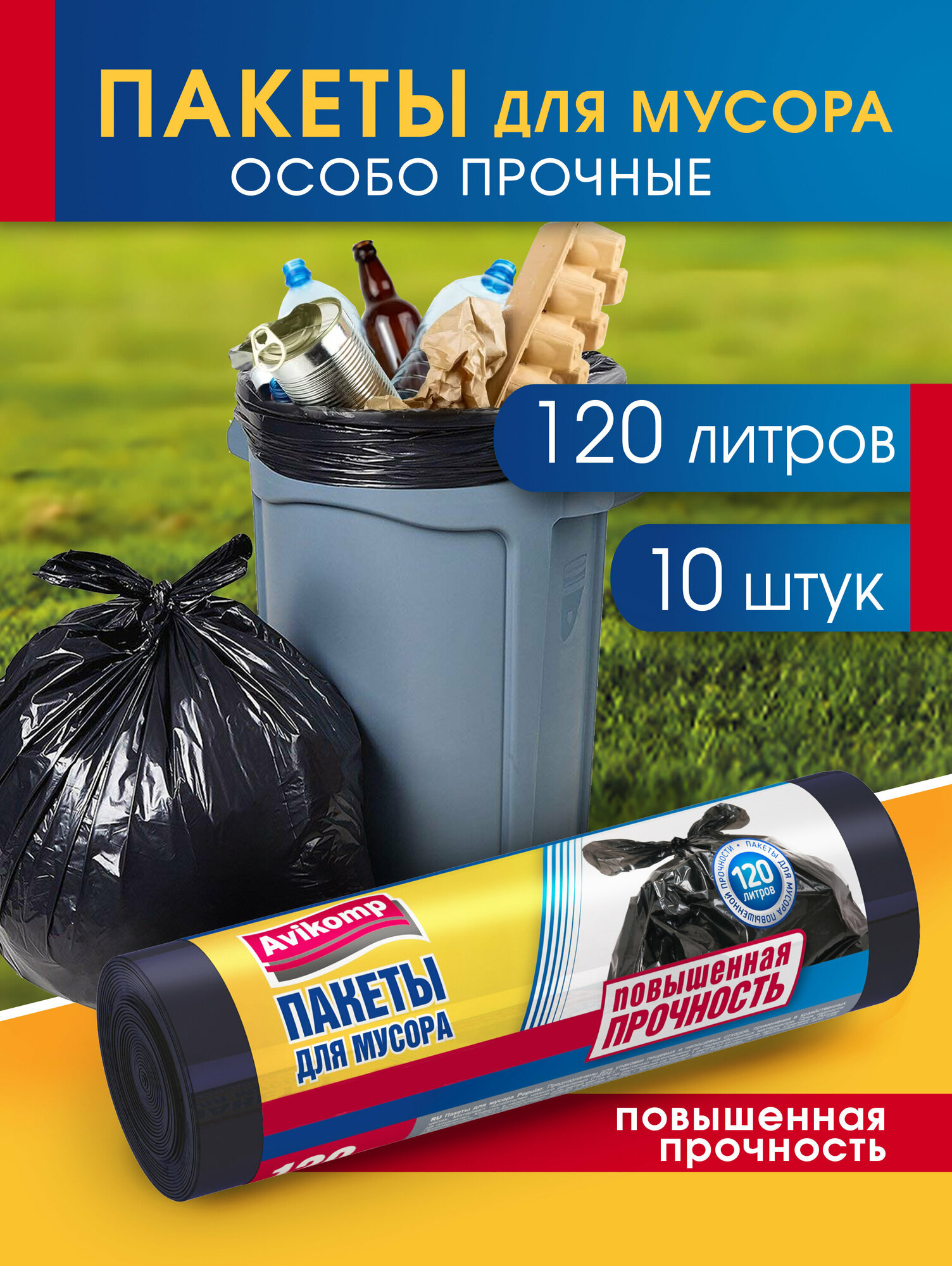 Мешки для мусора 120 л, 10 шт, Avikomp, черный интересное: