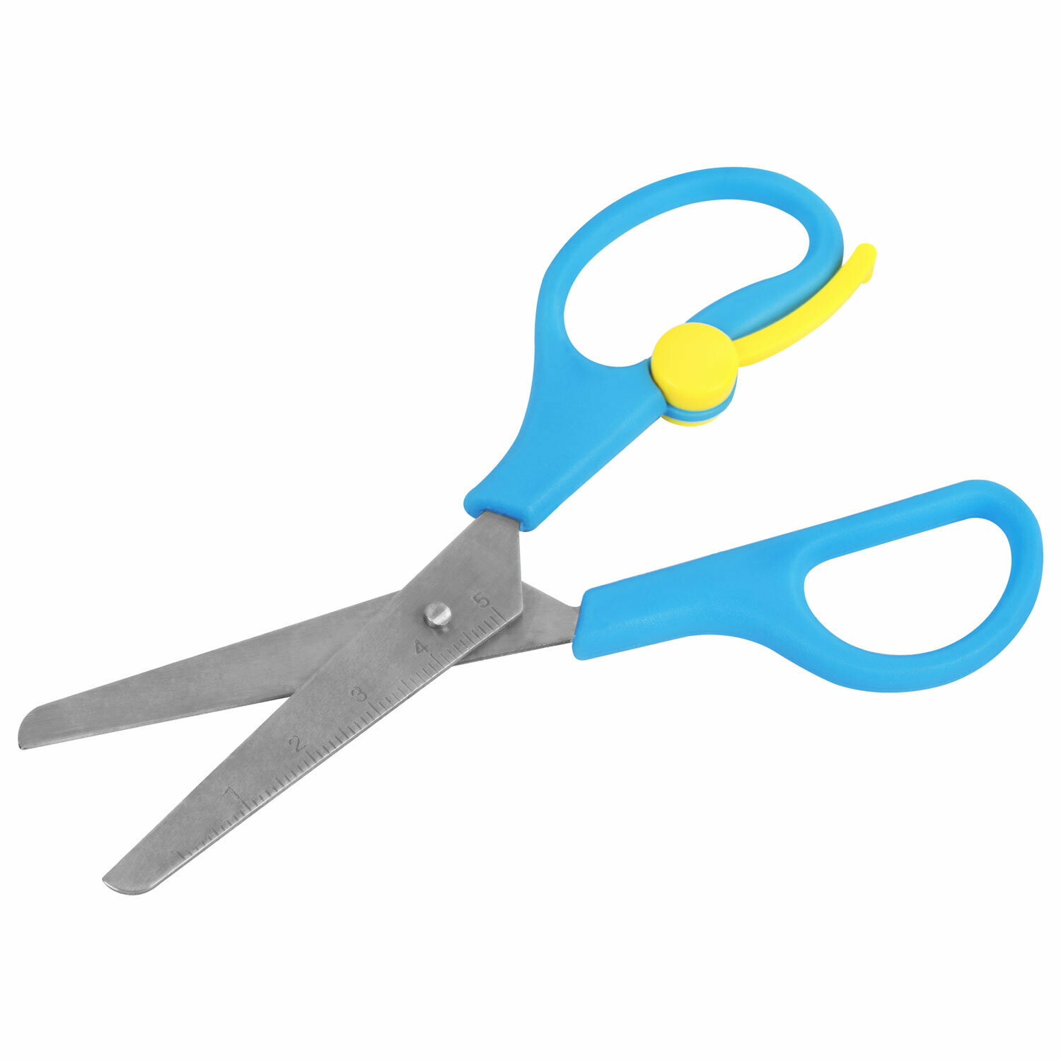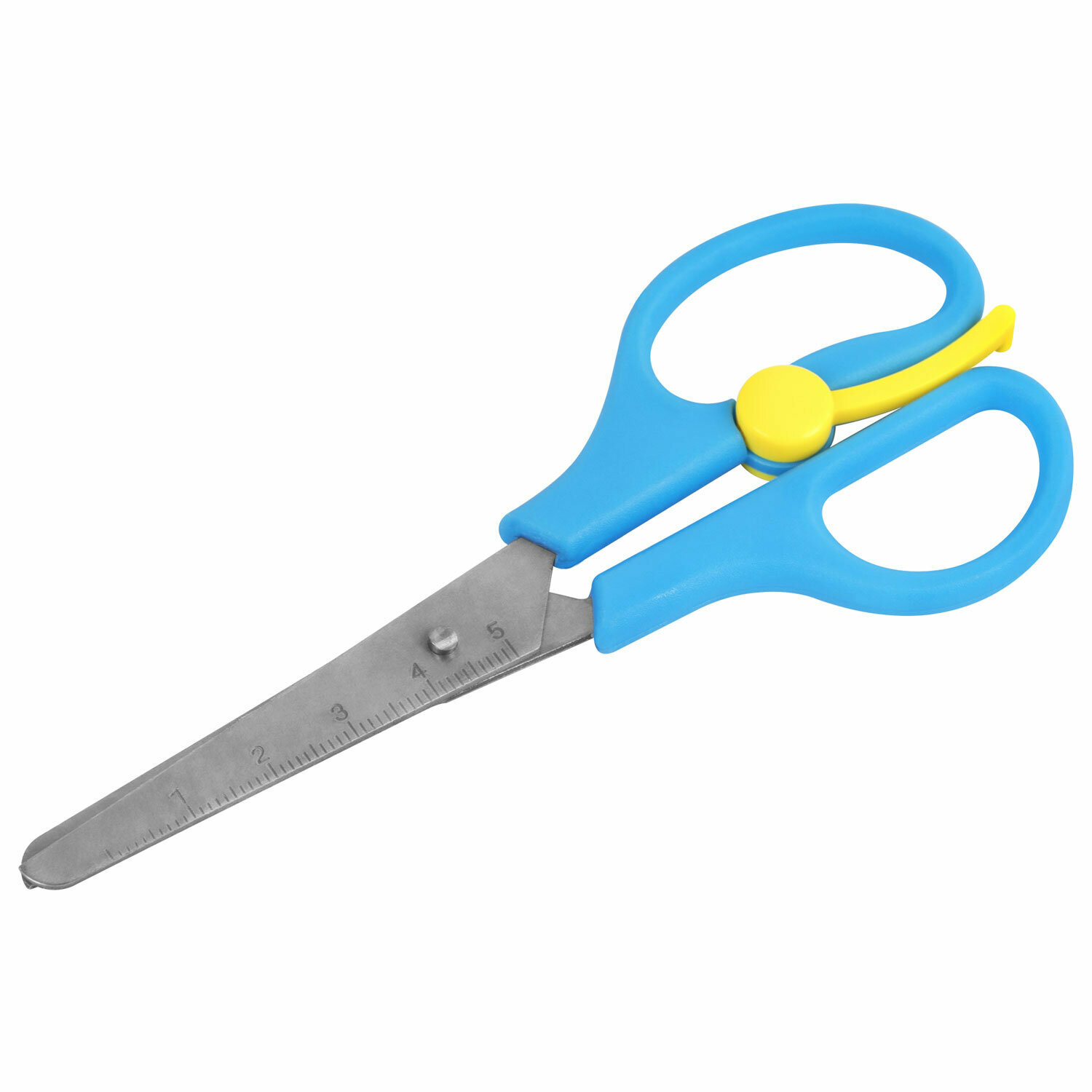 Купить Ножницы канцелярские детские безопасные для бумаги и картона, для школы и творчества, закругленные концы, усилитель, линейка, 130 мм, Юнландия, 238344