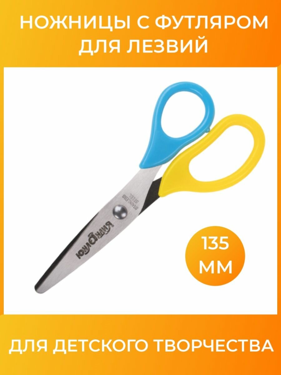 Ножницы юнландия, 135 мм, с футляром для лезвий, желто-голубые, блистер, 237110, 237110