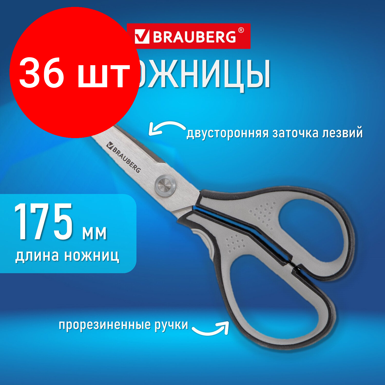 Купить Комплект 36 шт, Ножницы BRAUBERG "SUPER", 175 мм, серо-черные, 2-х сторонняя заточка, эргономичные ручки, 237295