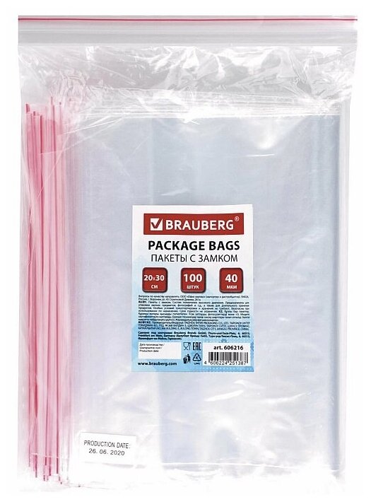 Ниже Вы можете прочитать отзывы на Brauberg Пакеты с замком зиплок гриппер комплект 100 шт. 200х300 мм ПВДтолщ.40 микр 606216, ознакомится с подробными характеристиками, посмотреть интересные обзоры и фотографии на Brauberg Пакеты с замком зиплок гриппер комплект 100 шт. 200х300 мм ПВДтолщ.40 микр 606216.