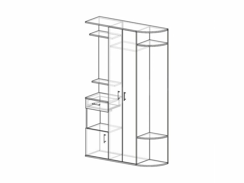 | Состав комплекта | шкаф с выдвижной штангой и с антресольной полкой; выдвижной ящик; вешалка с крючками для одежды; внизу ниша за распашной дверцей; зеркало |