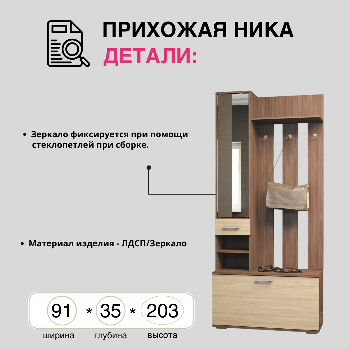 ЛДСП Прихожая НИКА ВЗ910 Вешалка с зеркалом Дуб Венге / Сосна Лоредо