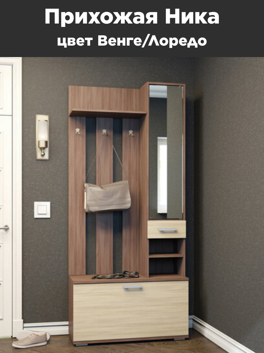 Комплект прихожей, прихожая Ника ТВ 500 с зеркалом "Эра" Венге/Лоредо