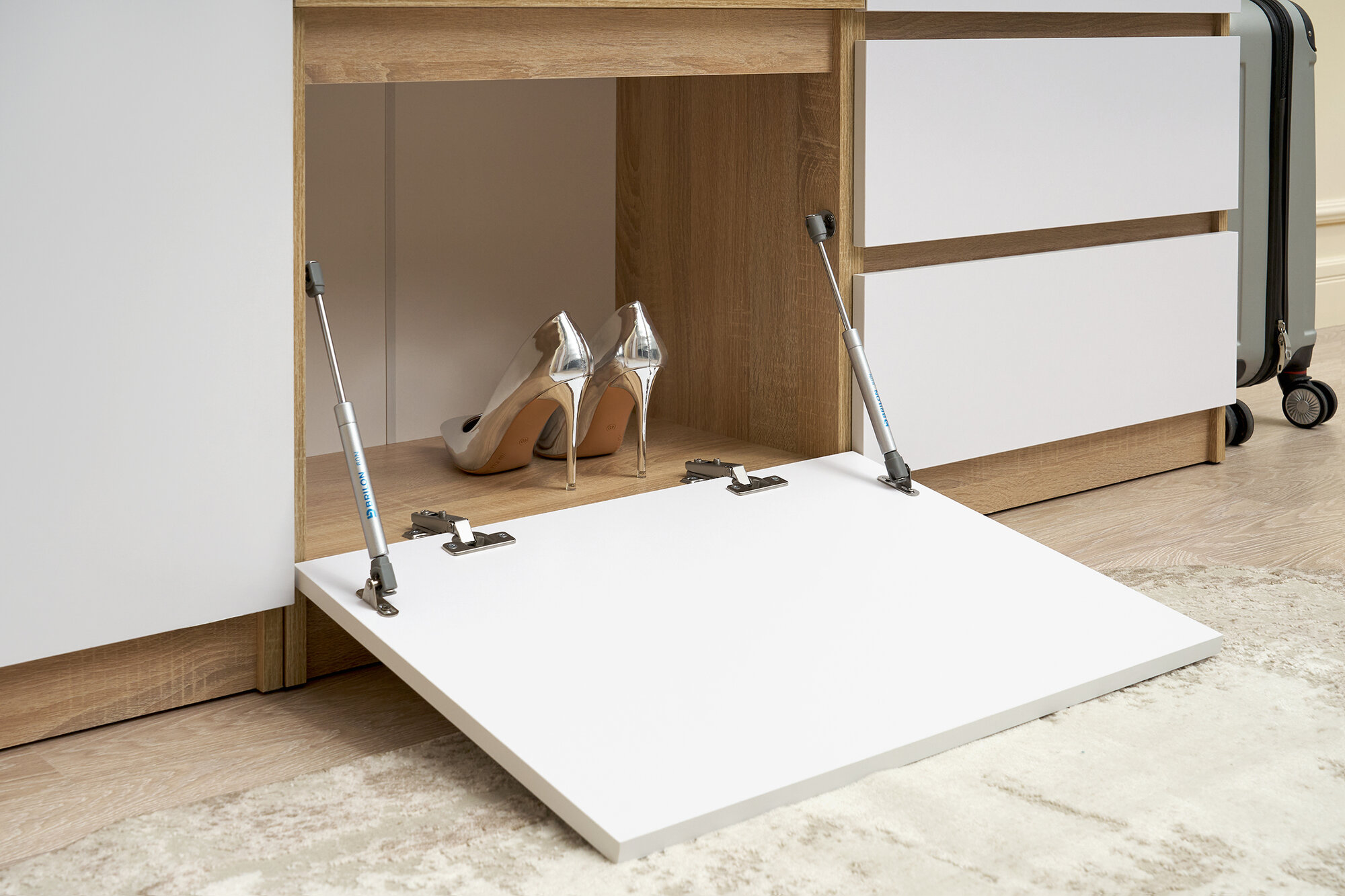| Дополнительная информация | Прихожая оборудована вешалкой с крючками, обувницей с откидной дверью, зеркалом и 4 выдвижными ящиками. |