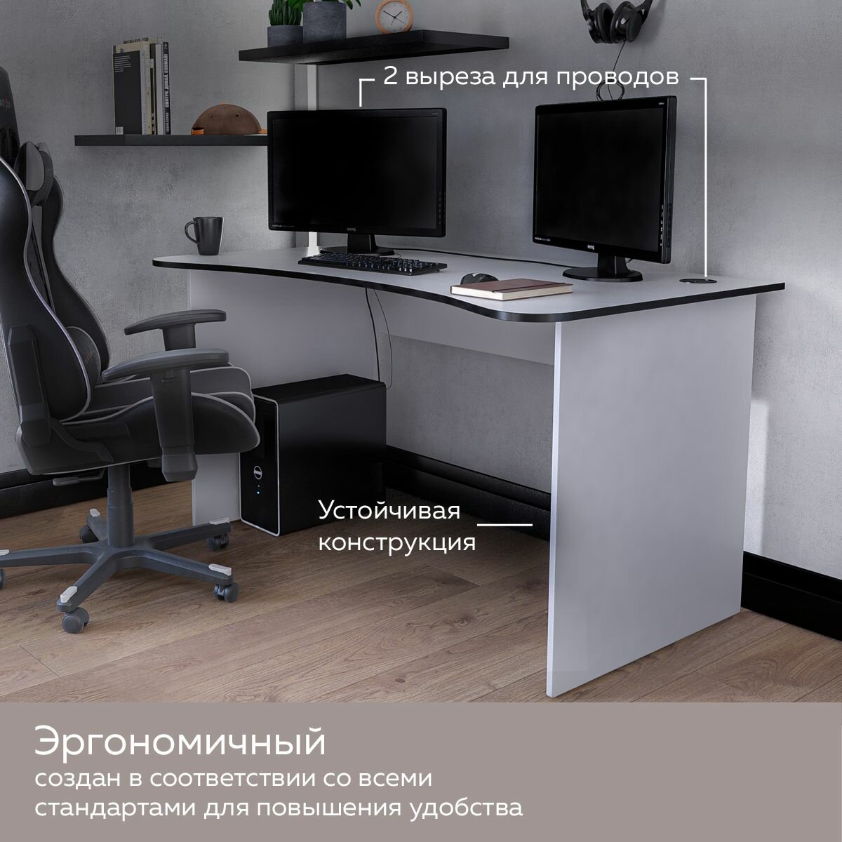 Купить Геймерский компьютерный стол, письменный стол SURF 1400 Белый/Черный, 140*71,6 см.