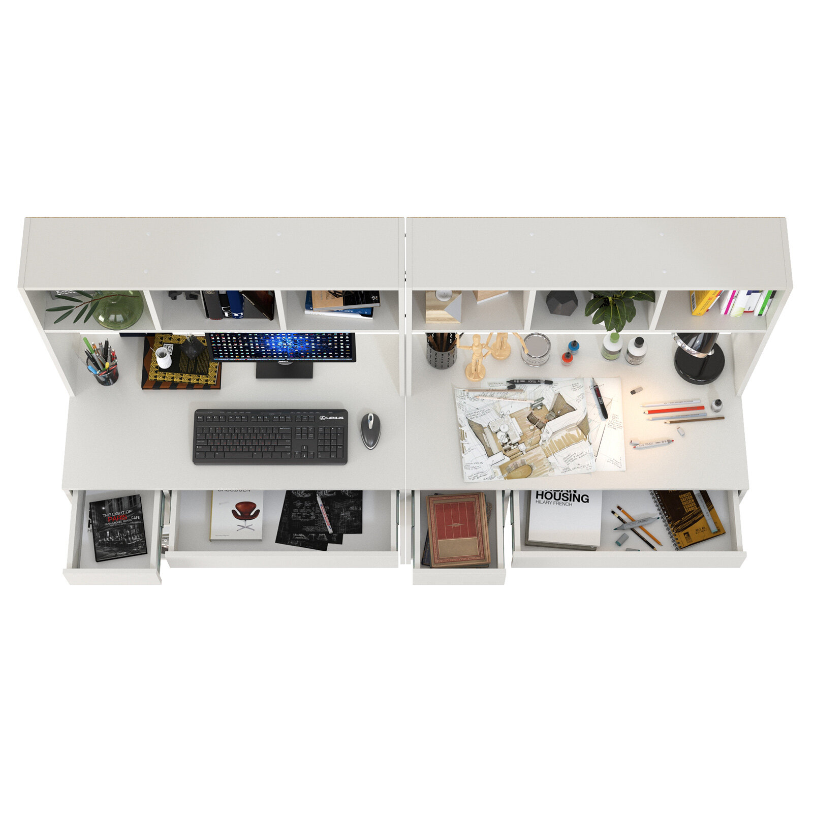 Два компьютерных стола Mobi Комфорт 12.77F цвет белый шагрень/дуб крафт золотой, 200х49,8х147 см, ун. сб.
