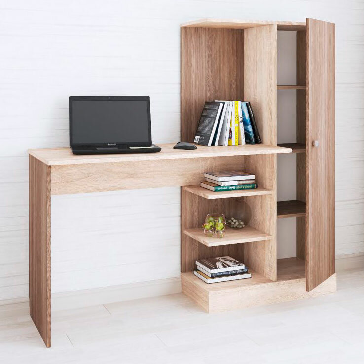 Компьютерный стол Квартет-6 Дуб Сонома/Ясень Шимо ЛДСП с полками, для спальни, гостиной, детской, кабинета 1350х1450х500 тэкс