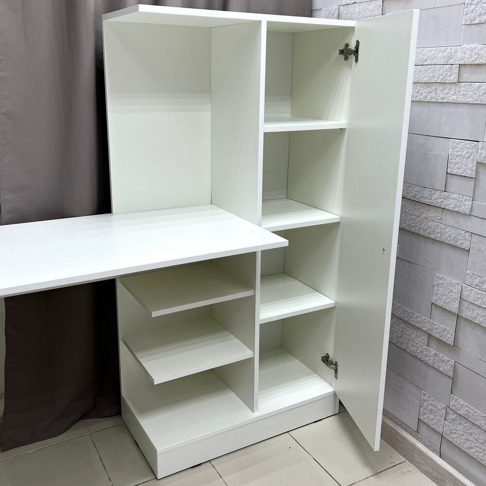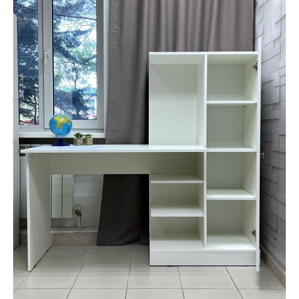 Компьютерный стол "Квартет-6", Белый с тиснением "Древесные поры", ЛДСП, с открытыми и закрытыми полками, для спальни, гостиной, детской, кабинета, 1350х1450х500, тэкс
