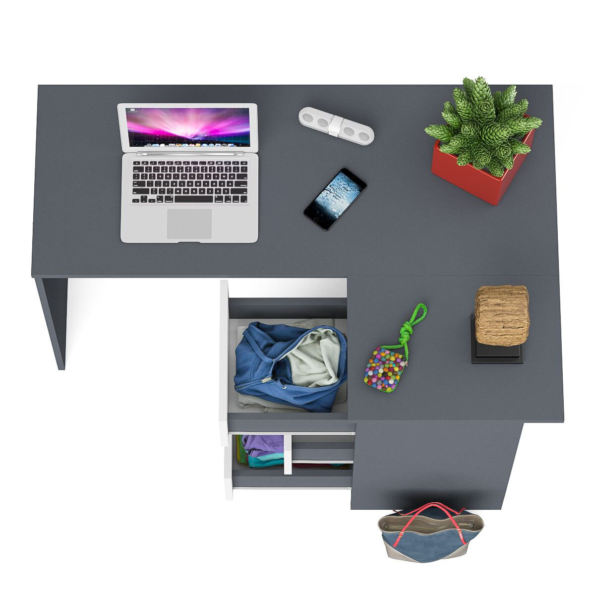 Стол компьютерный три ящика Мори МС-6 левый цвет графит/белый, ШхГхВ 90х50х76,6 см, ящики слева, НЕ универсальная сборка