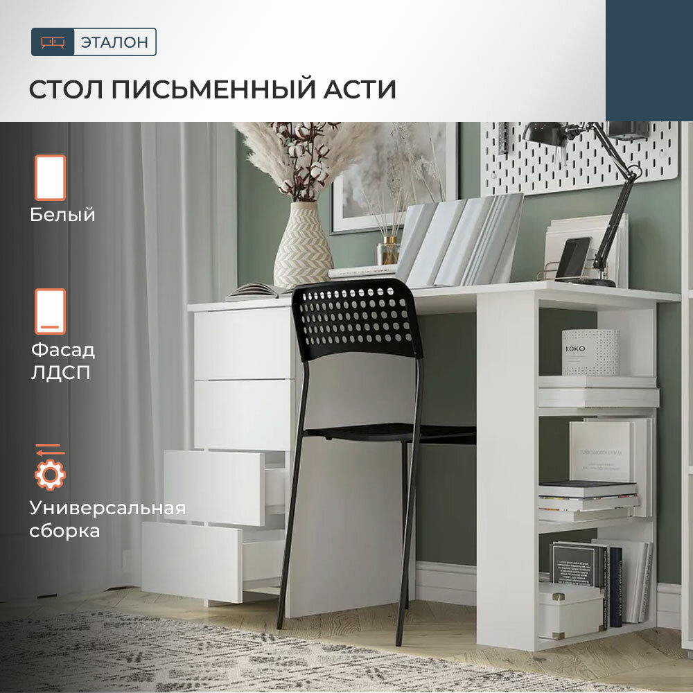Стол письменный белый с 4 ящиками и полками ASTI 3 интересное: