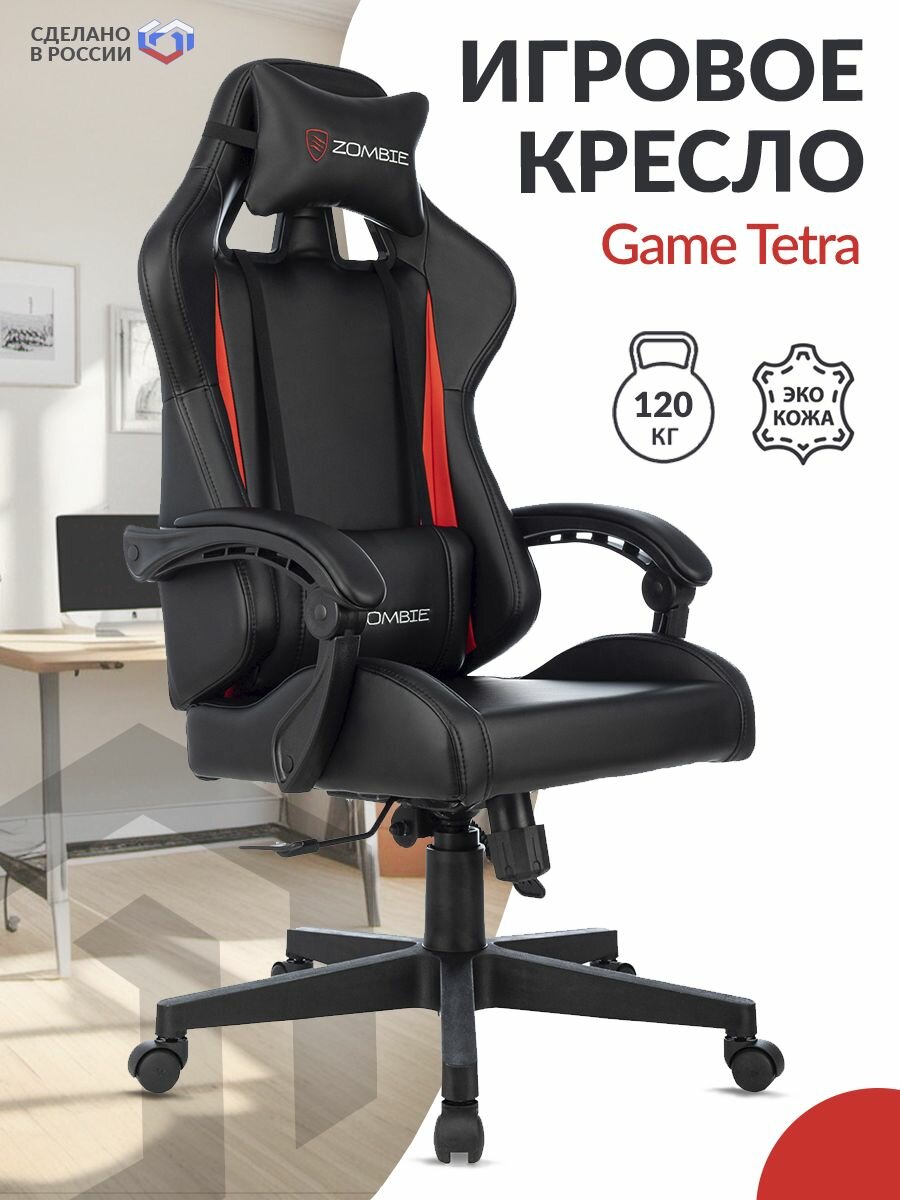 Кресло игровое Zombie GAME TETRA черный/красный эко. кожа крестов. пластик