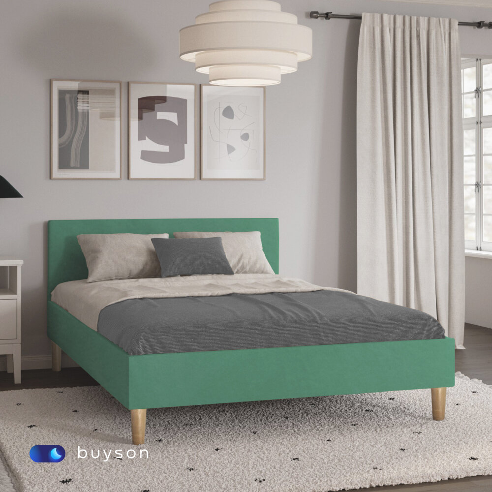 Двуспальная кровать buyson BuyStyle 200х140 см, изумруд, микровелюр