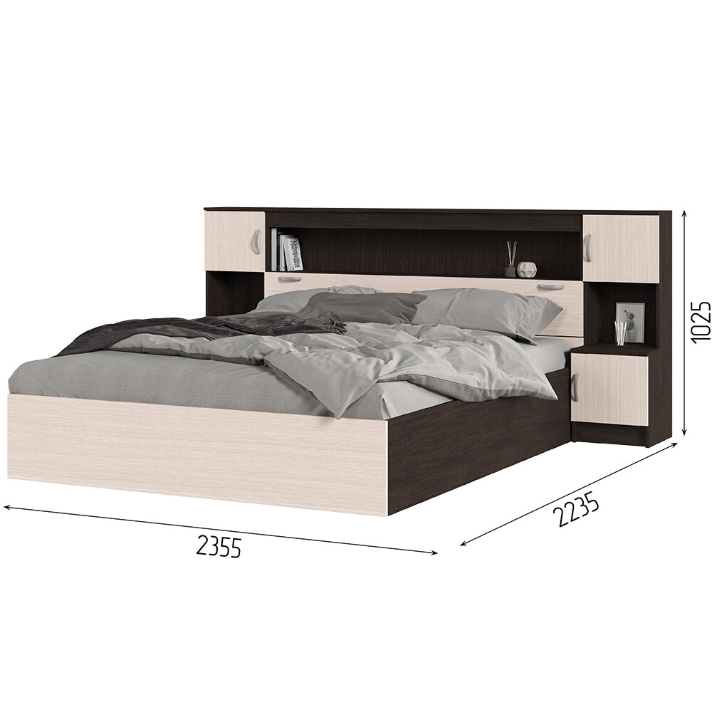Кровать двуспальная Гармония с выдвижными ящиками для хранения (Виктория) 160х200 см, Дуб белфорт/Венге