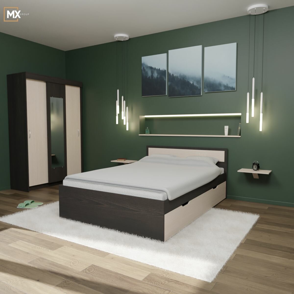 Кровать двуспальная Гармония с выдвижными ящиками для хранения (Виктория) 140х200 см, Дуб белфорт/Венге