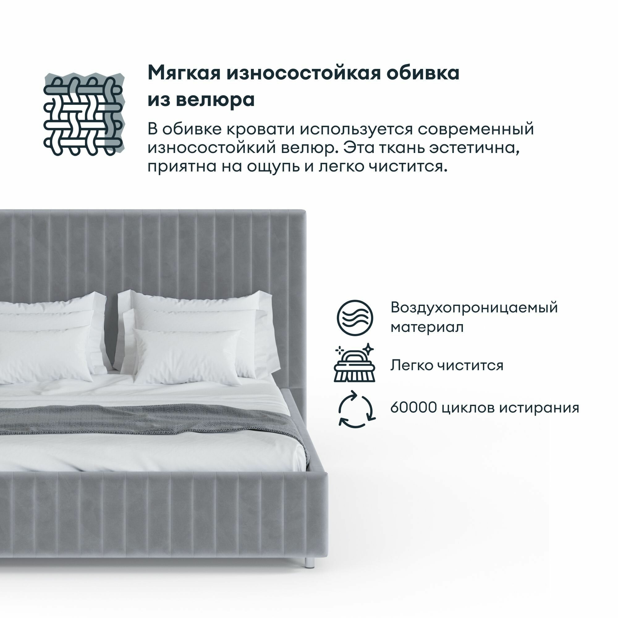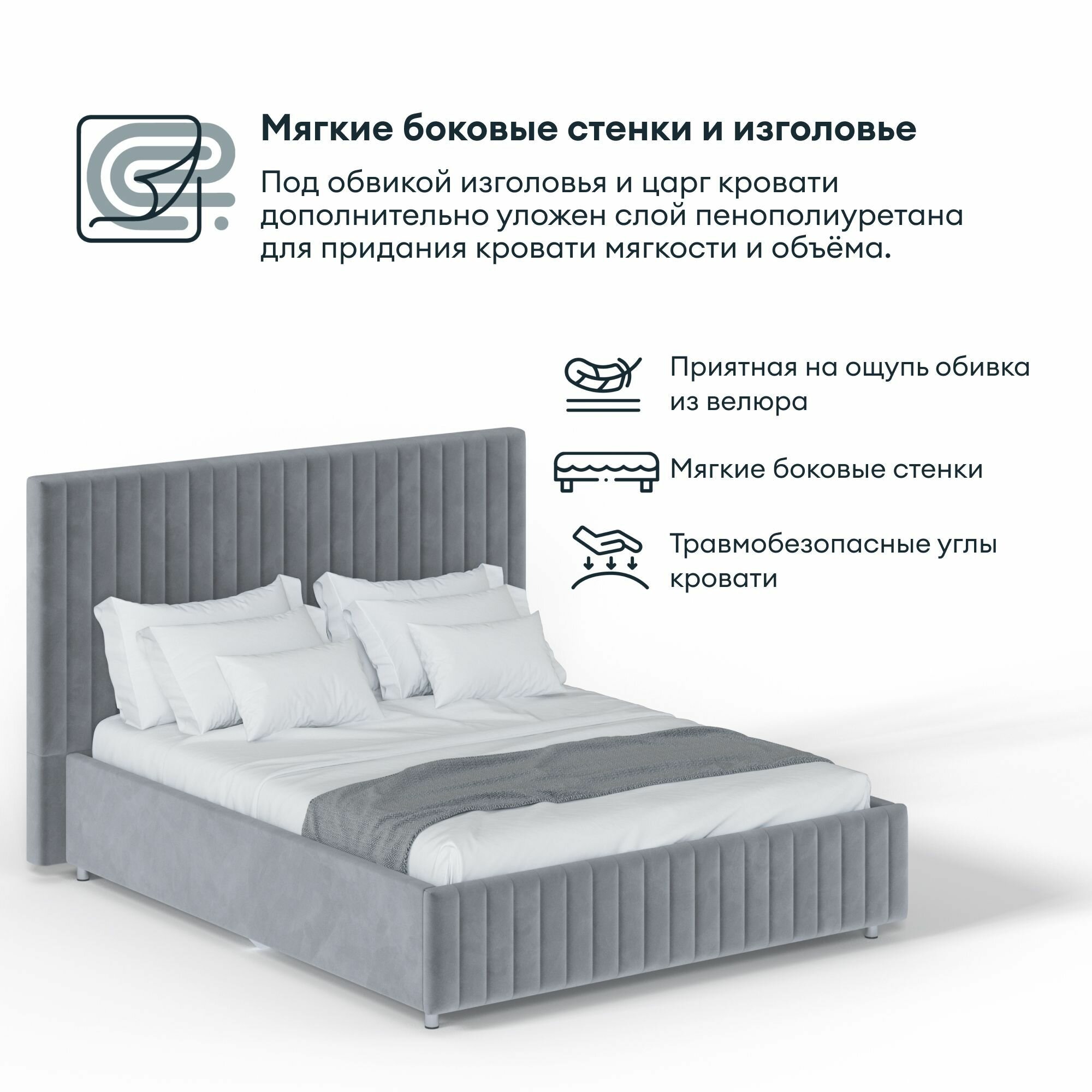 Кровать двуспальная HYPNOZ Salamanca 160х200, с подъёмным механизмом, Светло-серая