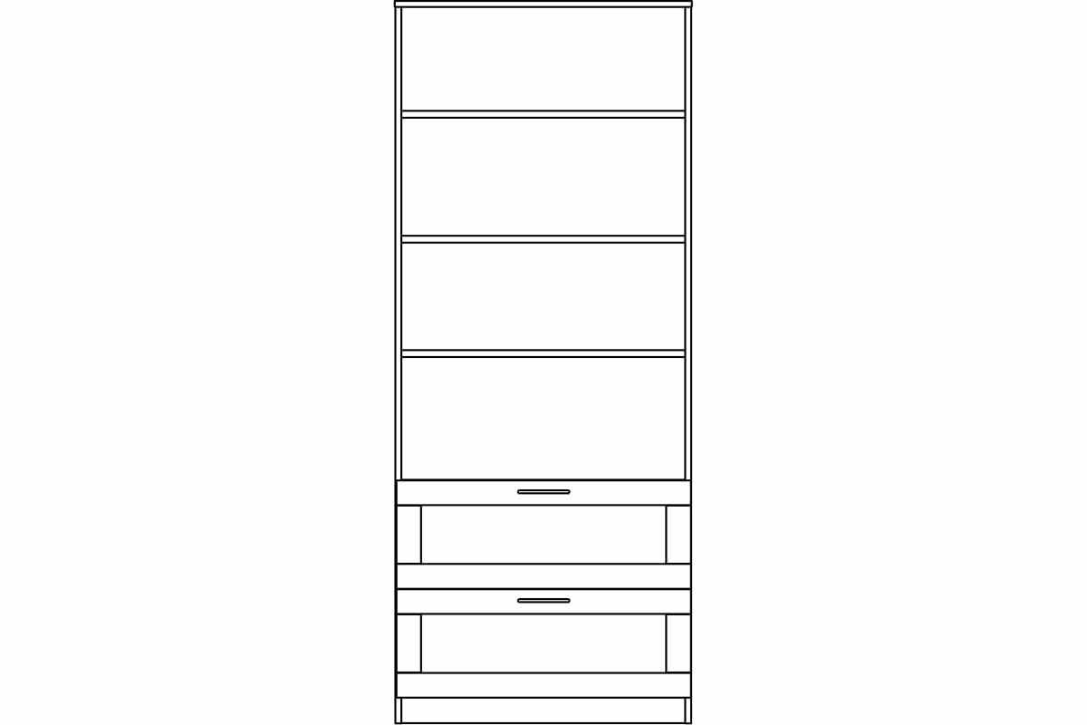 Стеллаж для книг, 39х190 см, 4 полки, с 2-мя ящиками, сонома