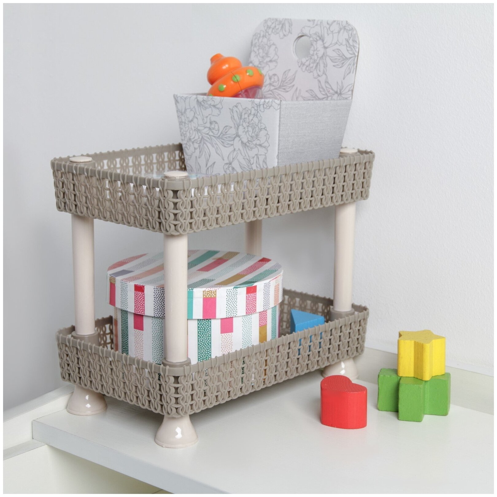 Доляна Этажерка настольная 2 яруса «Плетение», 24×15×20 см, цвет микс интересное: