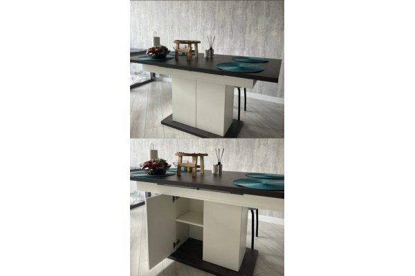Стол кухонный раздвижной обеденный, с тумбой и полками белый серый (ВхДхГ) 77х150х85 см, Детройт