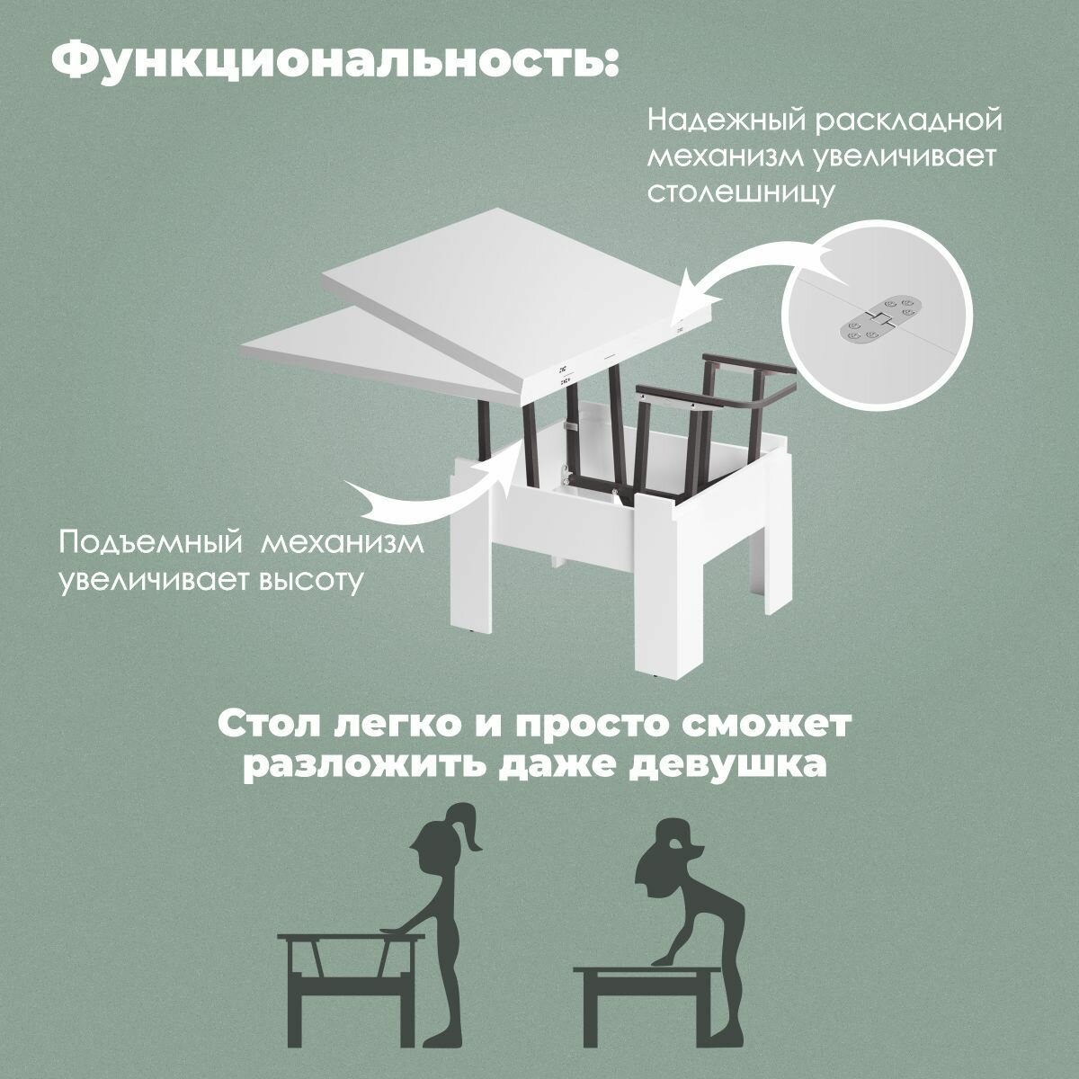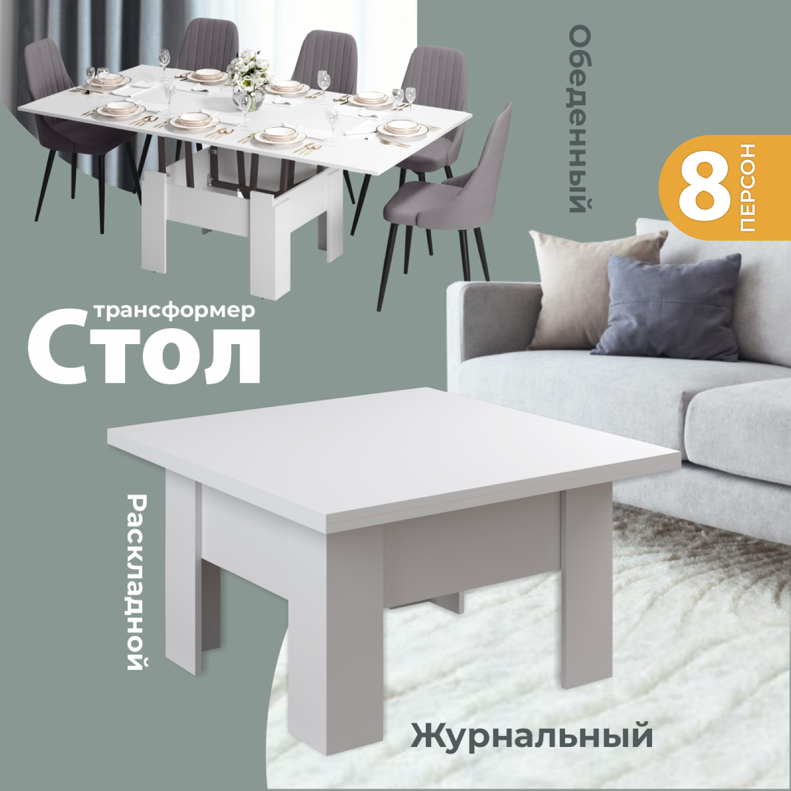 СохранитьСтол трансформер журнальный Престиж, стол кухонный раскладной, обеденный лофт, ЛДСП, цвет белый, АМИ мебель Беларусь интересное: