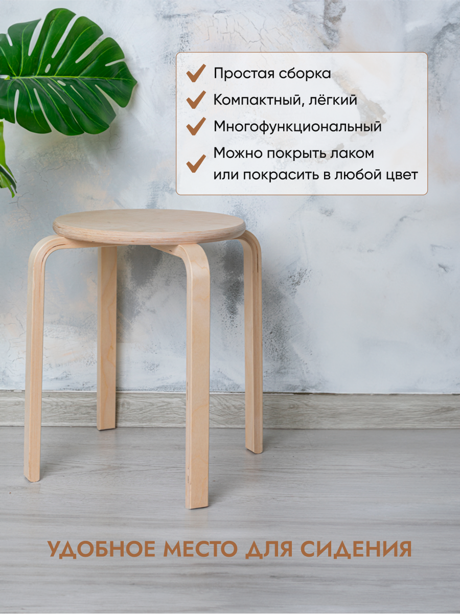 Комплект табуретов 4 шт деревянные круглые без покрытия, мебель для кухни
