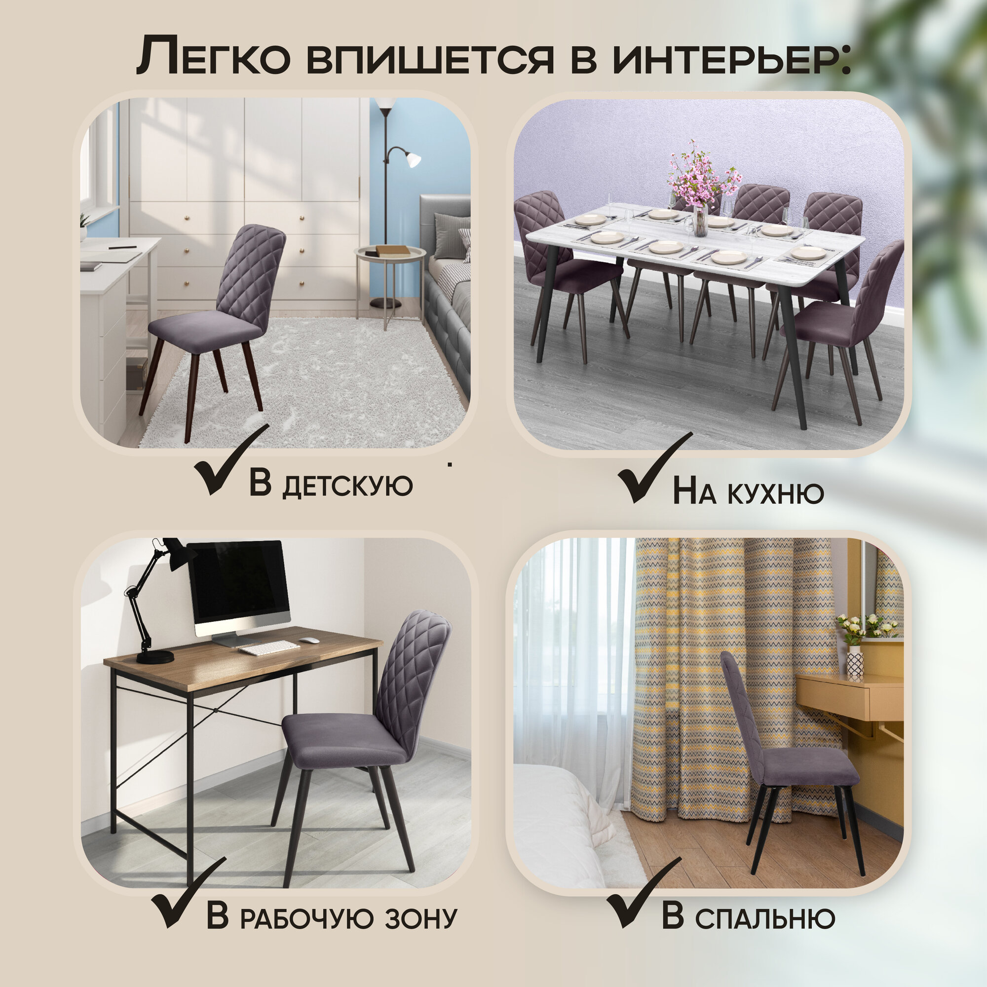 Стулья Ричи со спинкой, обеденные для кухни, гостиной, ножки дерево, вельвет 2 штуки, шоколадный, Ами Мебель, Беларусь