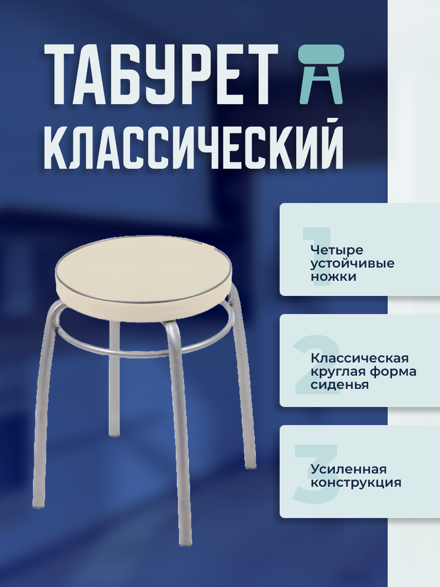 | Дополнительная информация | Табурет круглый 320мм светло-серый искусственная кожа/металл |
