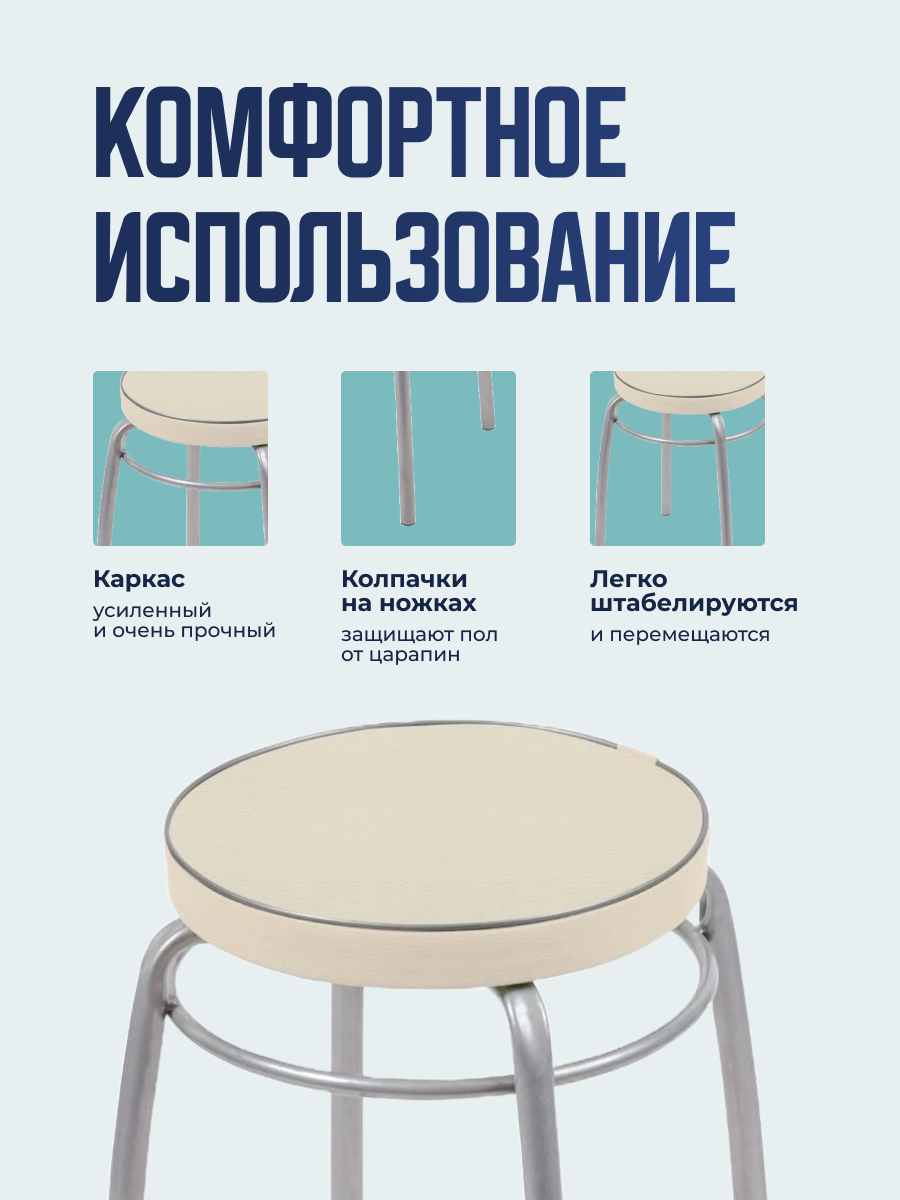 Купить Табурет "Фабрик 1" (тф01/ск слоновая кость) (5/1) 4 опоры, мягкое курглое сидение, легко штабелируют .