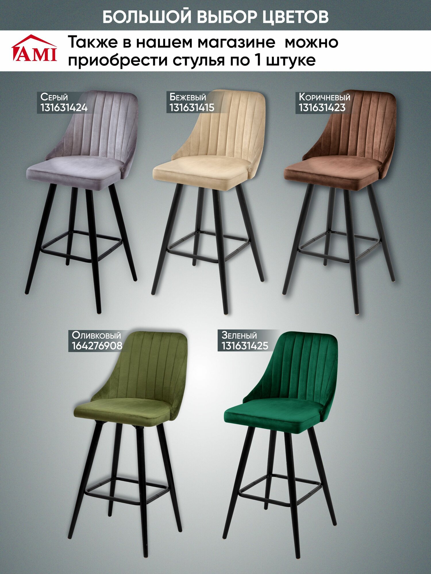 Барные стулья для кухни 2 штуки мягкие Лондон, обеденная группа, для дома, гостиной, кухонные стулья со спинкой, высокие ножки, обивка вельвет оливковый, АМИ мебель, Беларусь