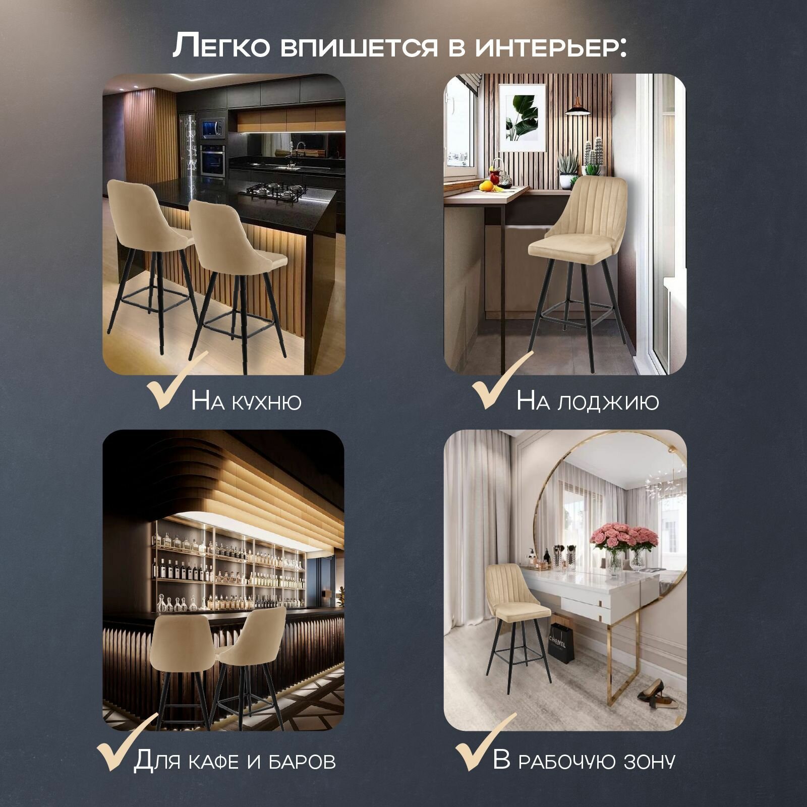 СохранитьБарные стулья для кухни 2 штуки мягкие Лондон, обеденная группа, для дома, гостиной, кухонные стулья со спинкой, высокие ножки, обивка вельвет бежевый, АМИ мебель, Беларусь интересное: