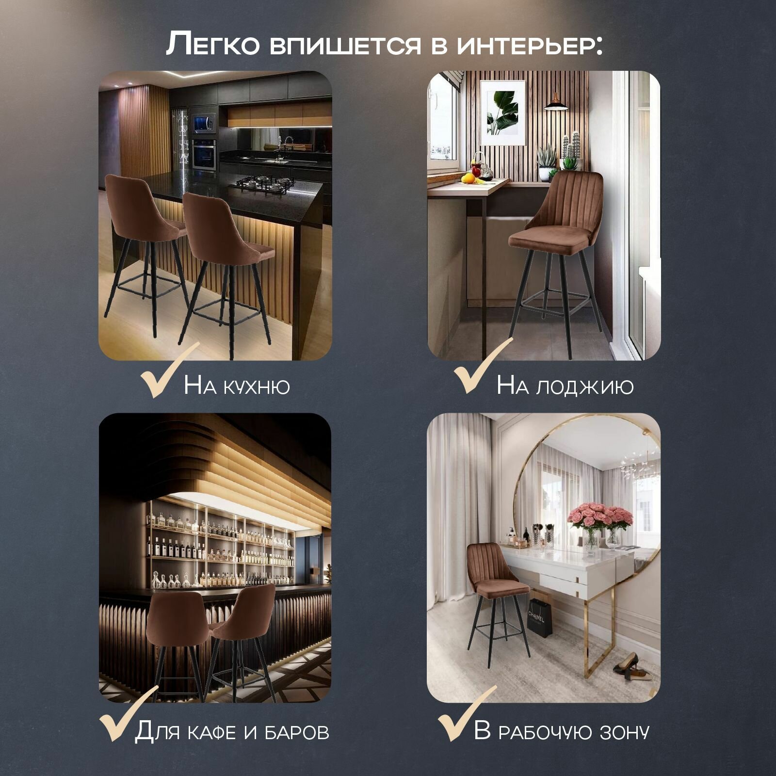 СохранитьБарные стулья для кухни 2 штуки мягкие Лондон, обеденная группа, для дома, гостиной, кухонные стулья со спинкой, высокие ножки, обивка вельвет коричневый, АМИ мебель, Беларусь интересное: