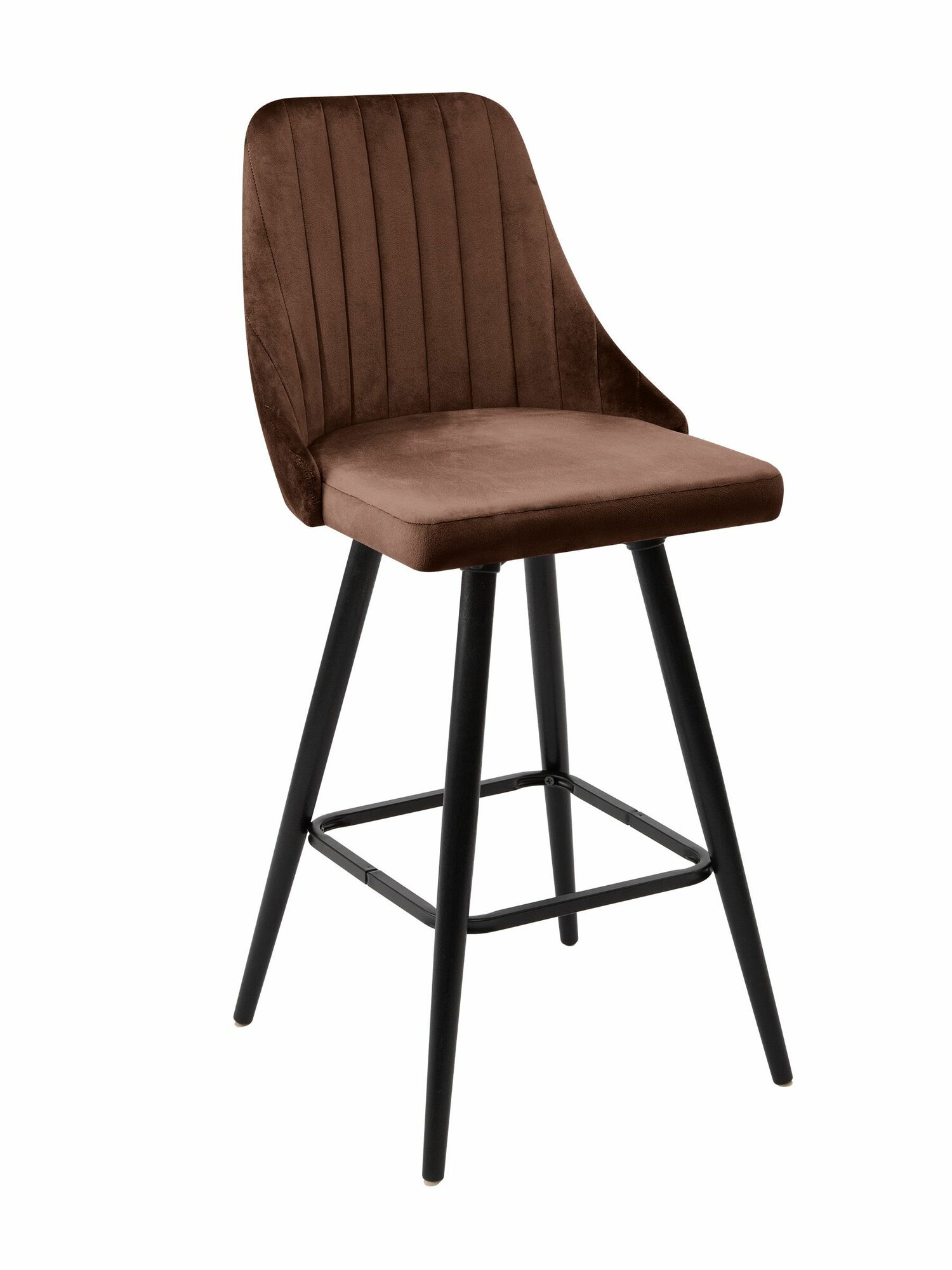 Барный стул со спинкой Лондон, ножки деревянные высокие, мягкий, обеденный для кухни, гостиной, для дома, обивка вельвет коричневый, АМИ мебель, Беларусь