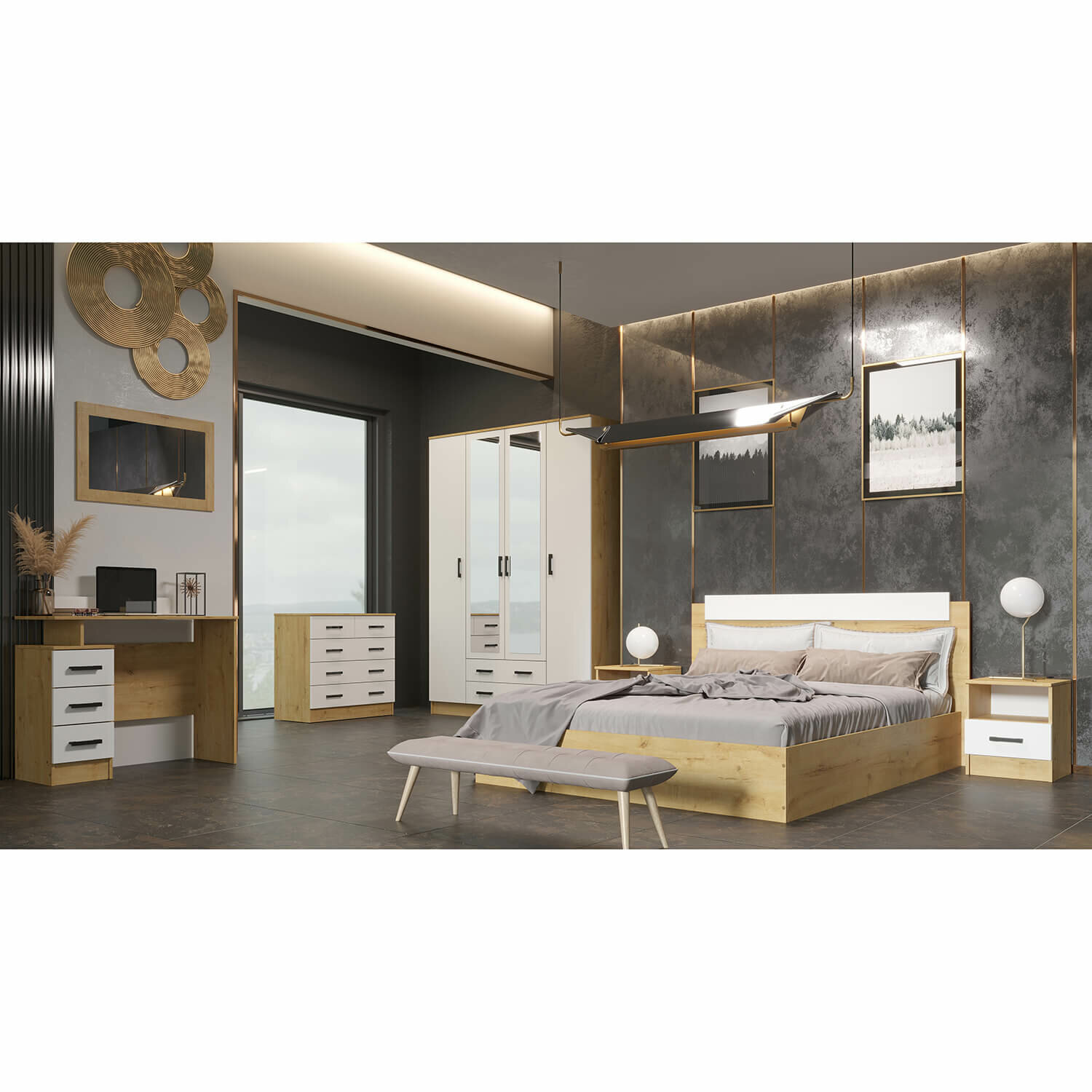 Комод К800-3/2 с 5-ящиками Дуб Вотан/Белый гладкий