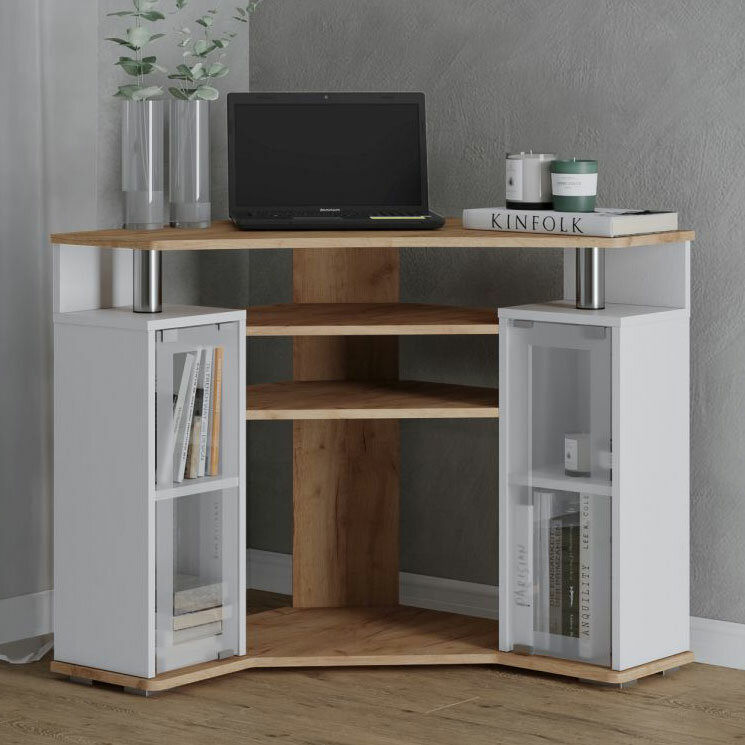 Тумба под телевизор ТВ 044-2у, угловая, ЛДСП, дуб крафт золотой/белый (800х250х770)