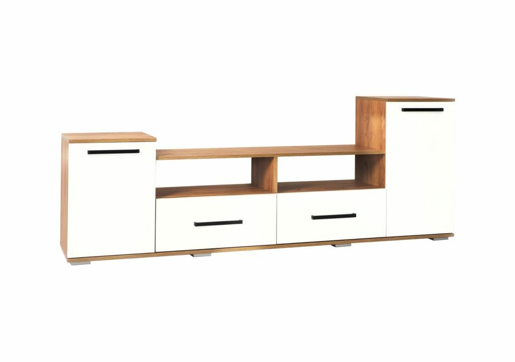 Тумба ТВ в гостиную «Парус-2», дуб крафт золотой/белый (2000х375х750)