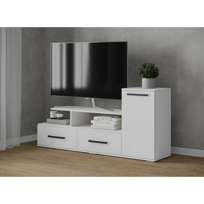 Тумба ТВ Мебельный Рай "Парус-10", с ящиками, белый, 180см x 40см x 53см