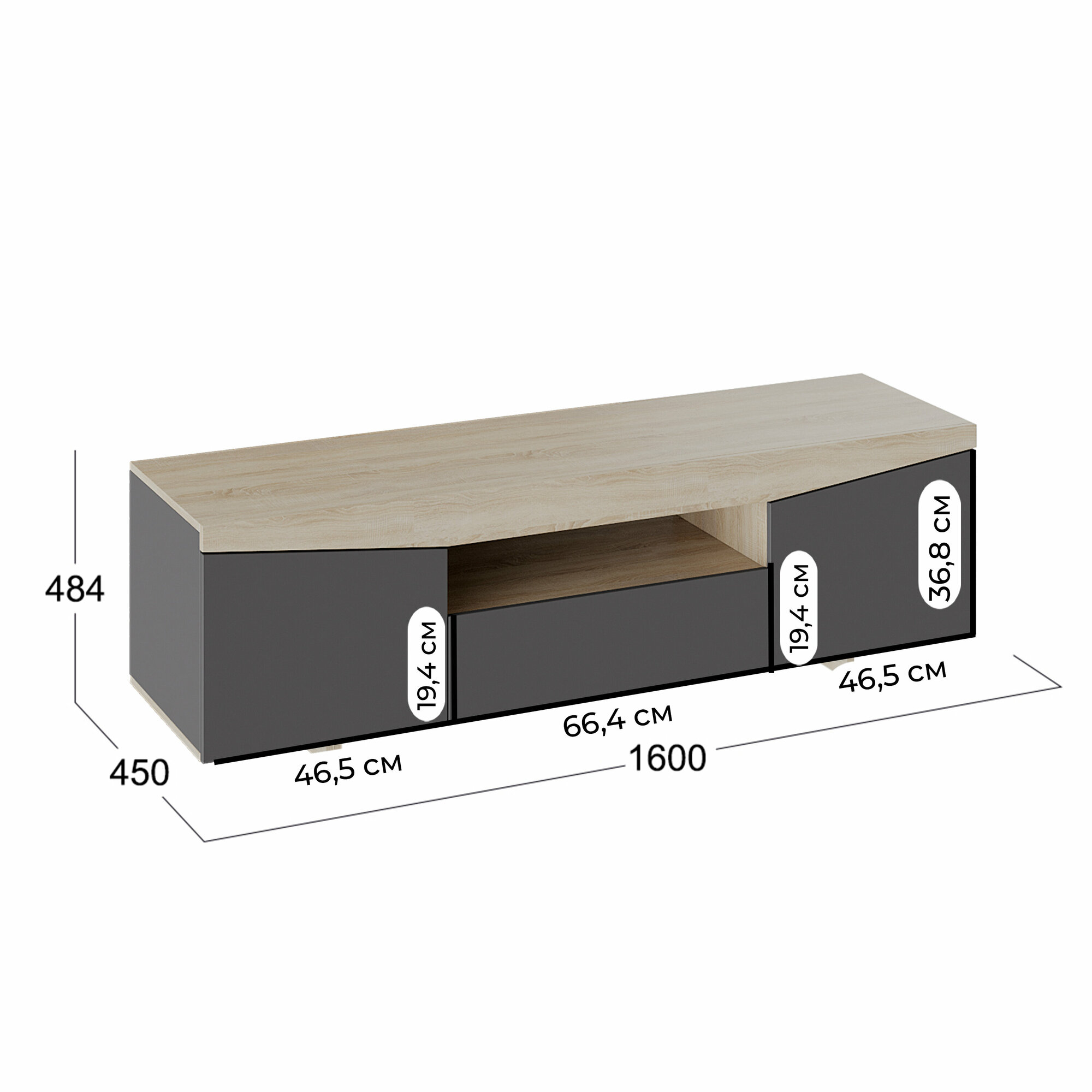 Тумба под ТВ ТриЯ Тумба под ТВ тип 1 дуб сонома / графит серый 160х45х48.4 см