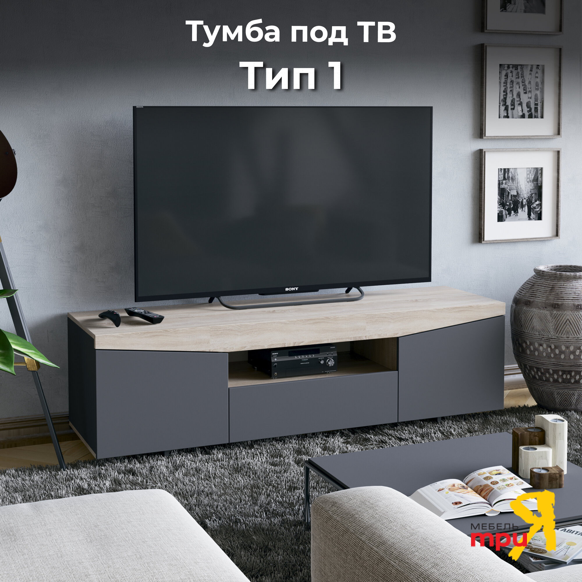 Тумба ТВ Тип 1 графит, серый, бежевый интересное: