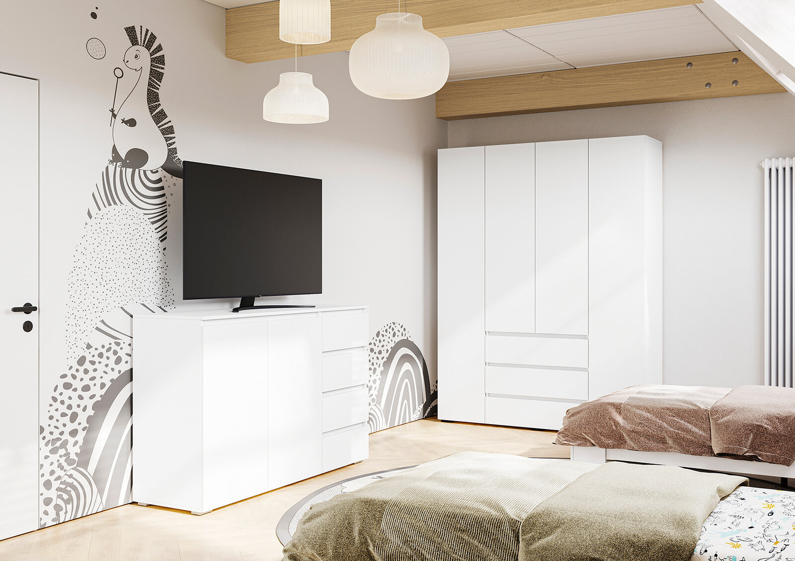 Комод хелен КМ 02, 802 4 ящика (0,802х0.958х0.460) фасад белый/корпус белый