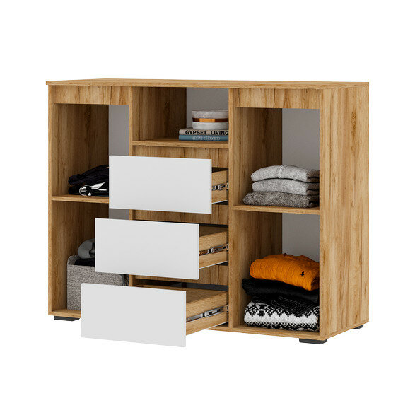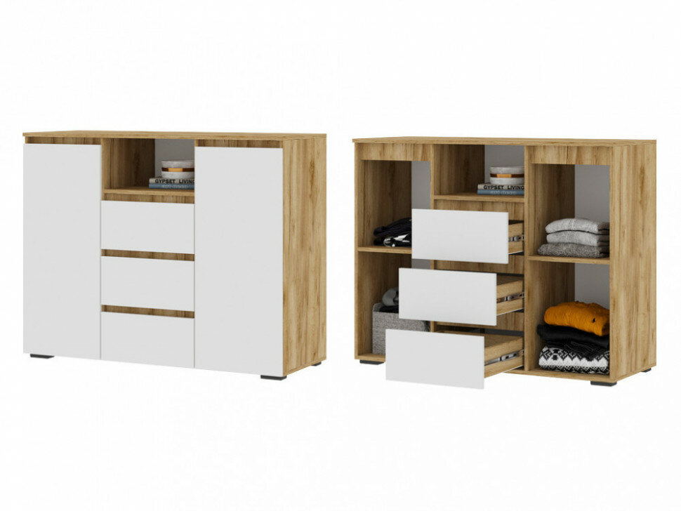 Комод для одежды Ирэн с ящиками, с полками, 120х46х96 см, Белый / Дуб Крафт золотой