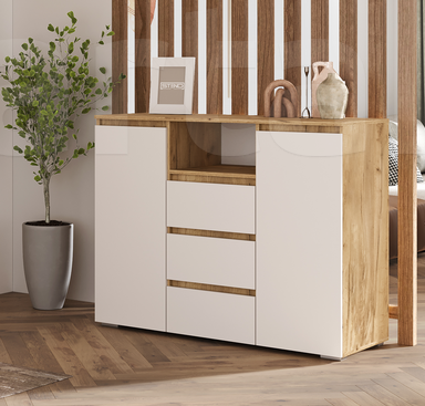Комод Сальма КМ 022, ЛДСП, анкор/белый глянец, 83,8х106х46 см, материал: ЛДСП, цвет: Белый.