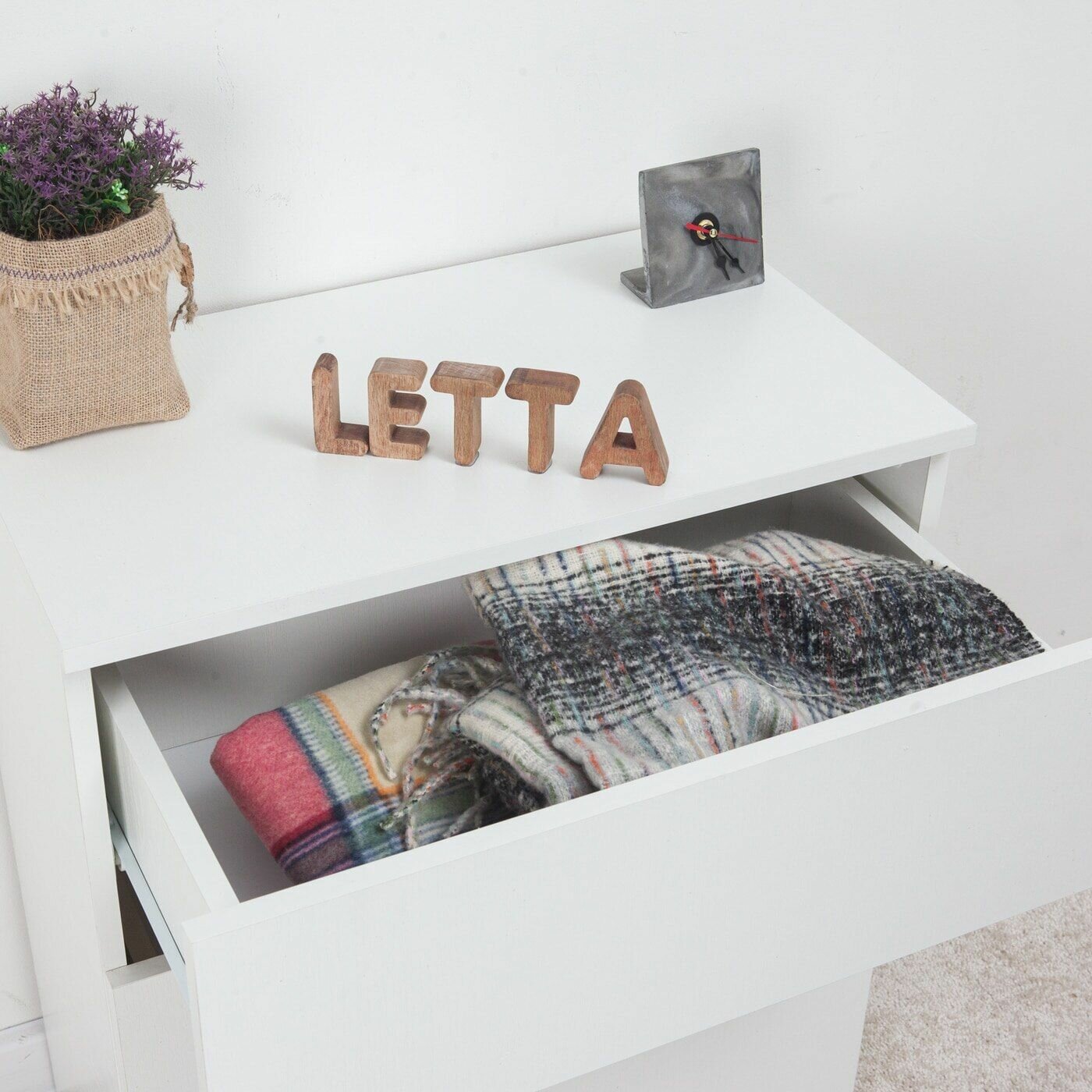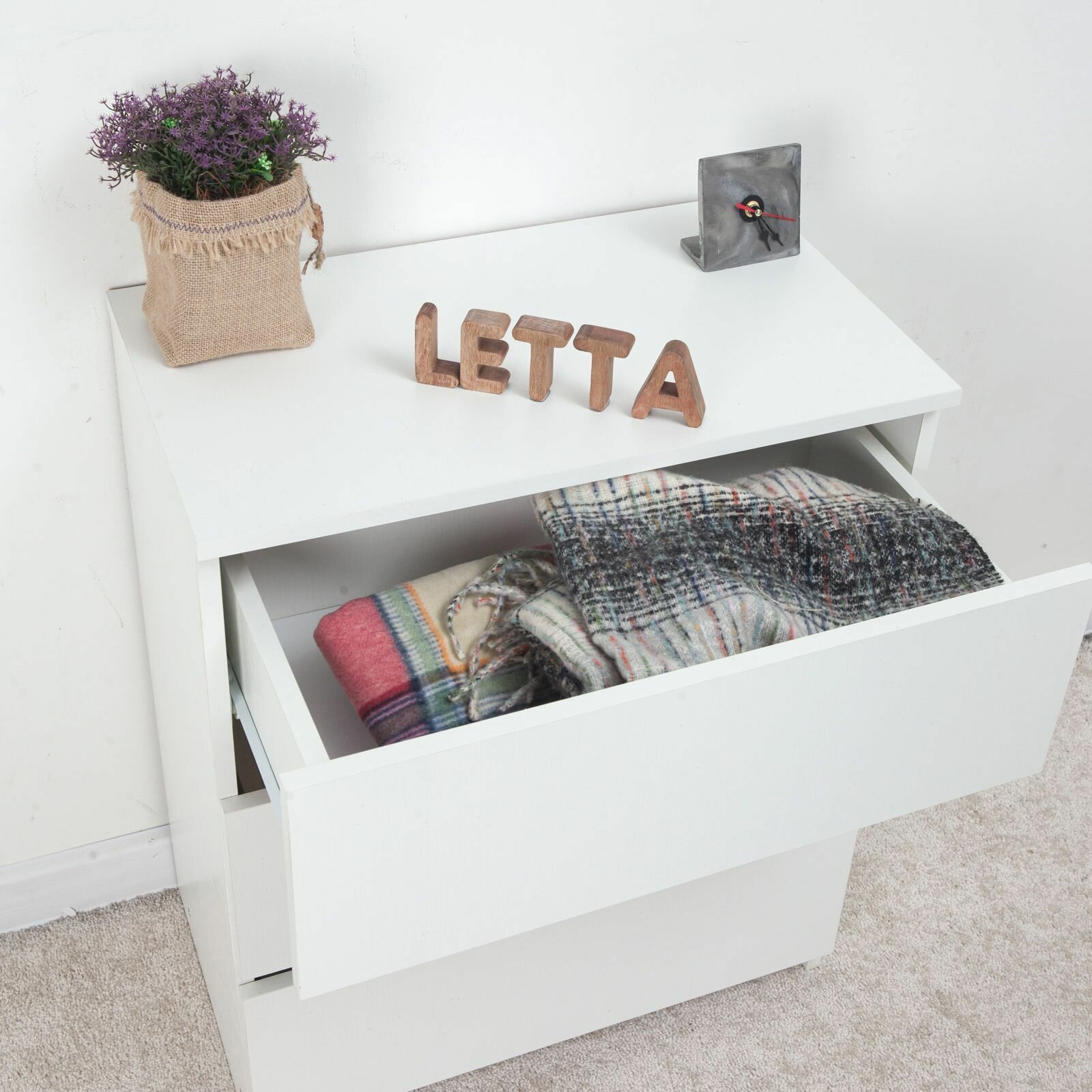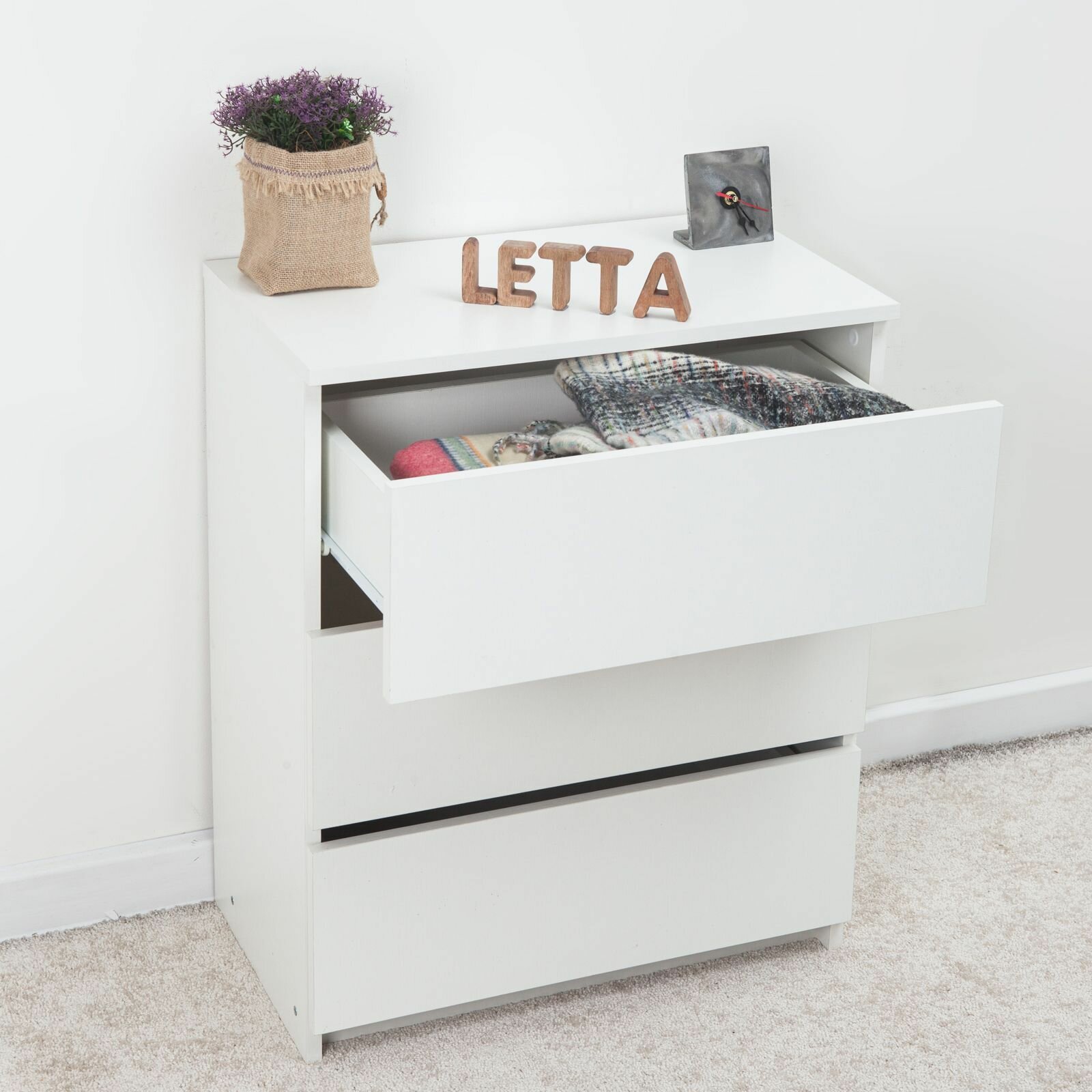 | Комплектация | Комод шкаф деревянный Ультра Белое тиснение 602х701х304 для хранения вещей одежды, лофт |