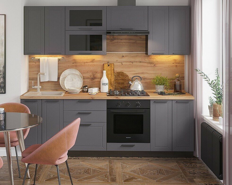 Шкаф кухонный напольный для духовки Полюс, МДФ Soft-touch темно-серый