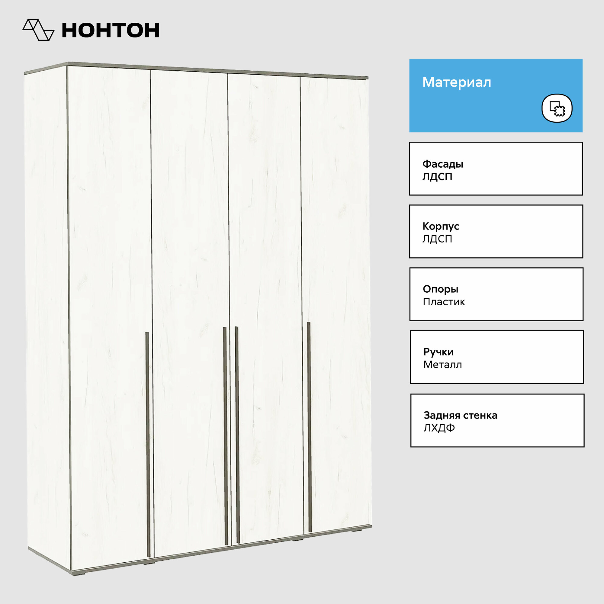 Купить Шкаф Норд 4-х ств Дуб Крафт Белый/ Шкаф распашной для одежды, 1600х223,6х51 см