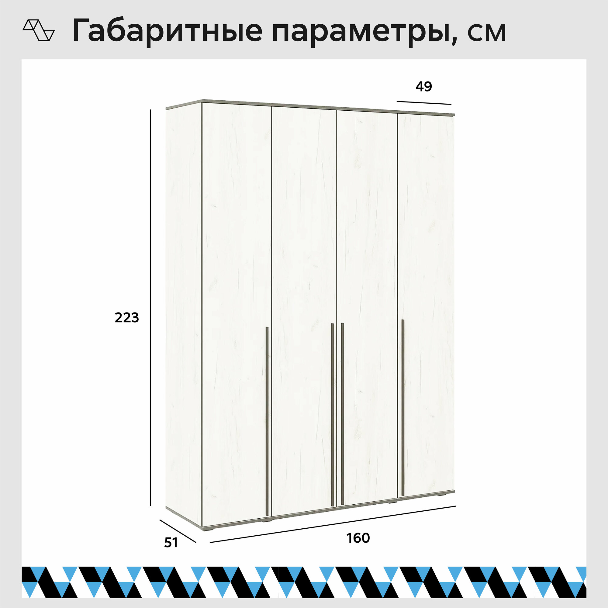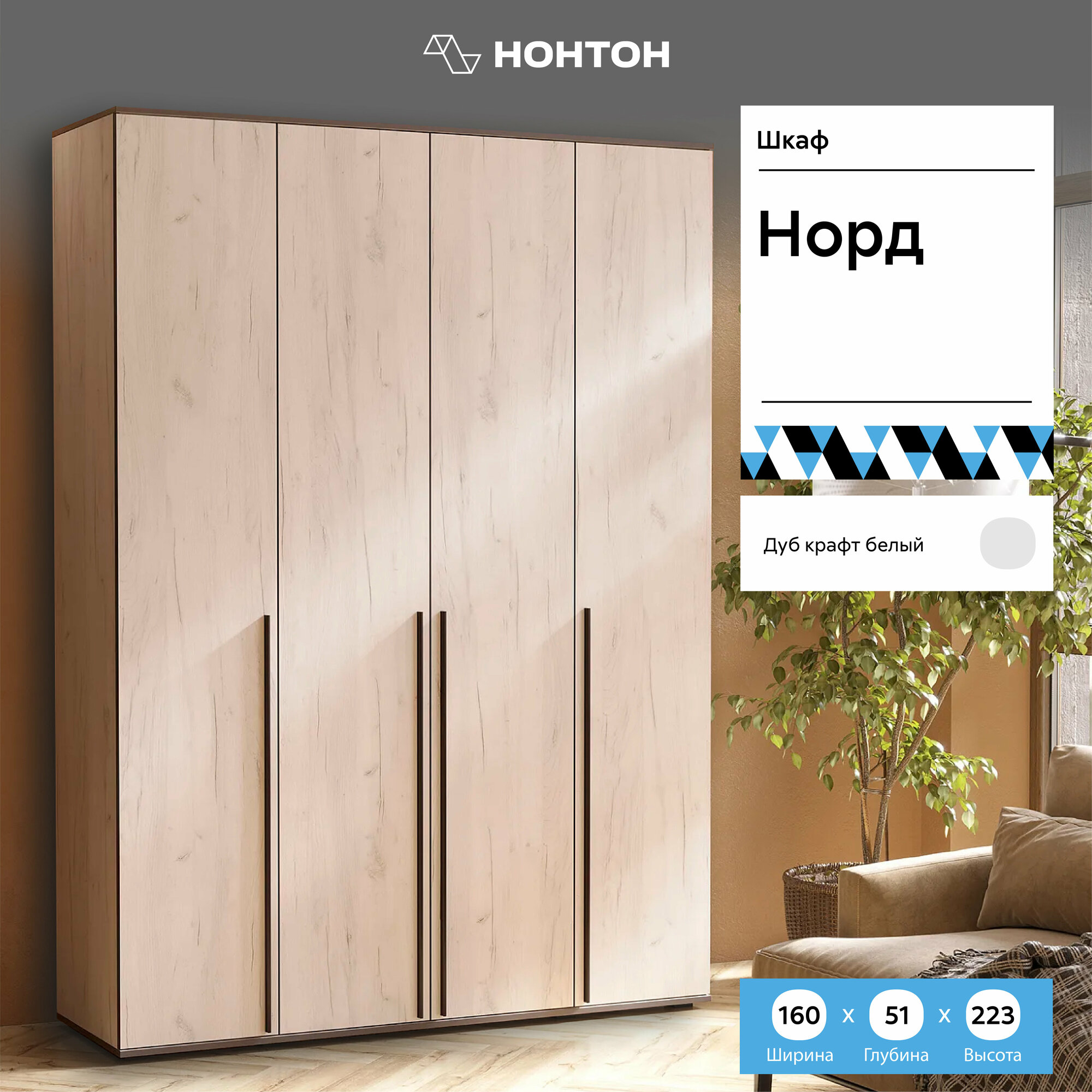 СохранитьШкаф Норд 4-х ств Дуб Крафт Белый/ Шкаф распашной для одежды, 1600х223,6х51 см интересное: