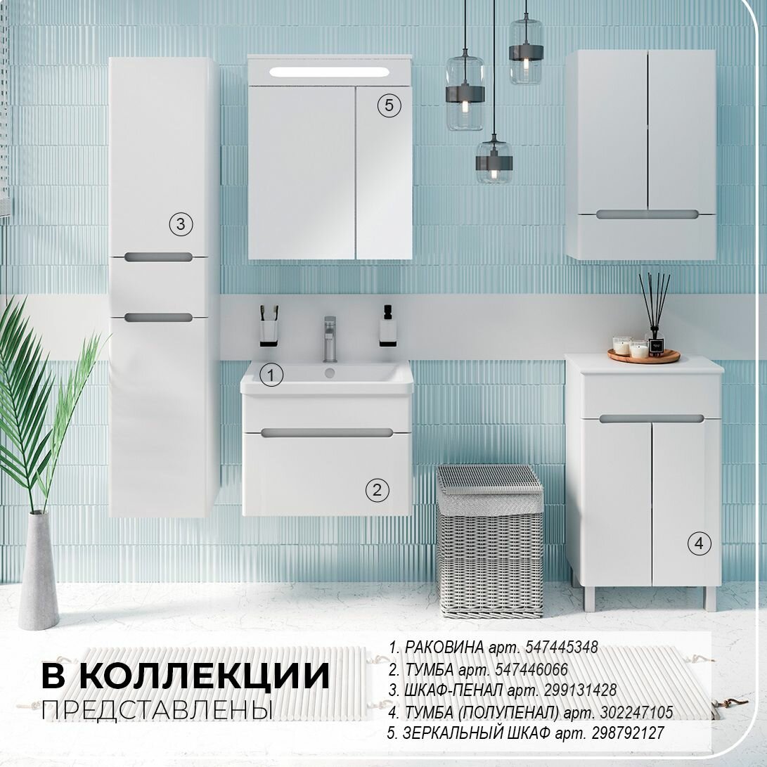 Шкаф в ванную с зеркалом Николь 55, с подсветкой, левый, белый