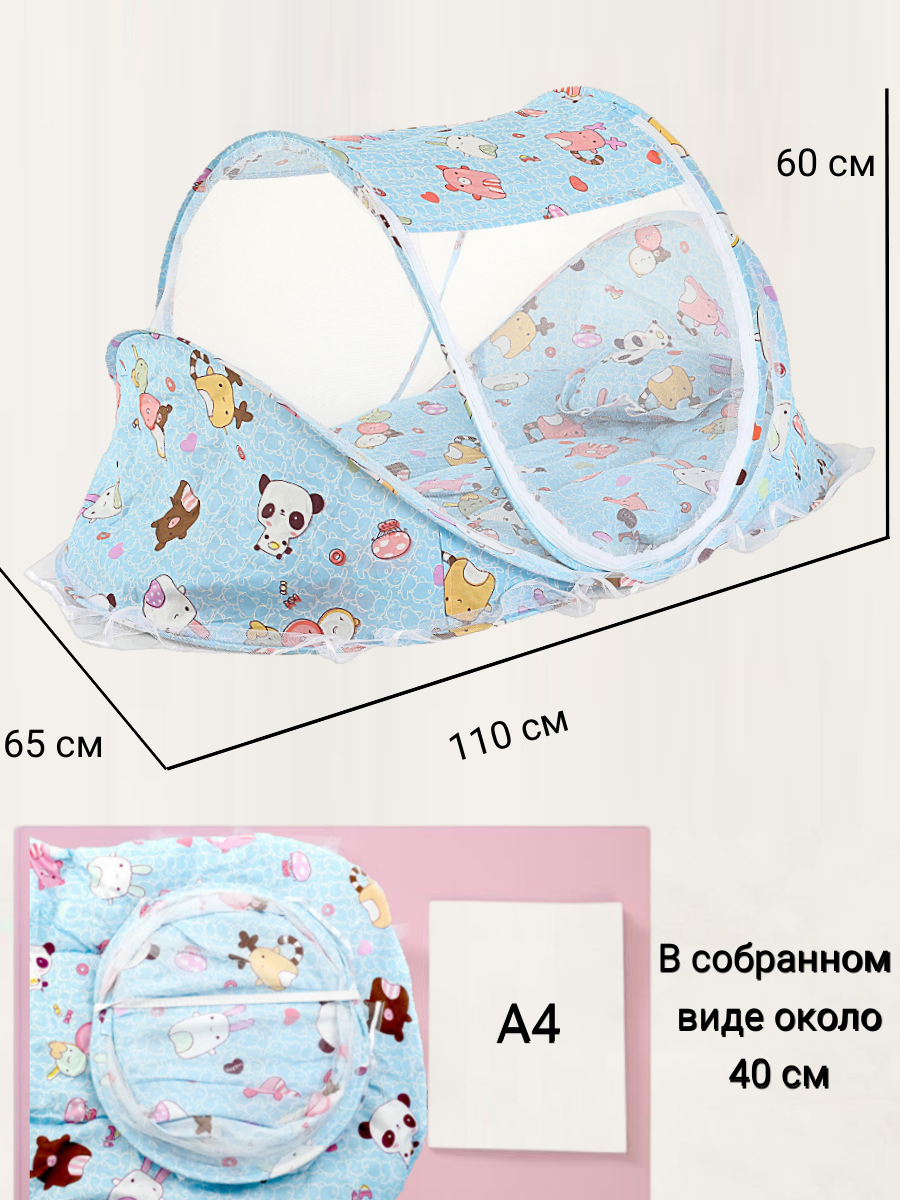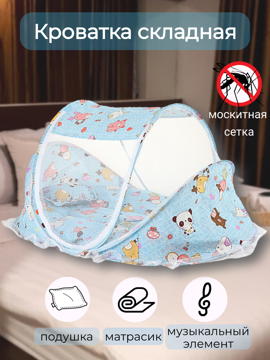 Кроватка с москитной сеткой складная Мультики голубая интересное: